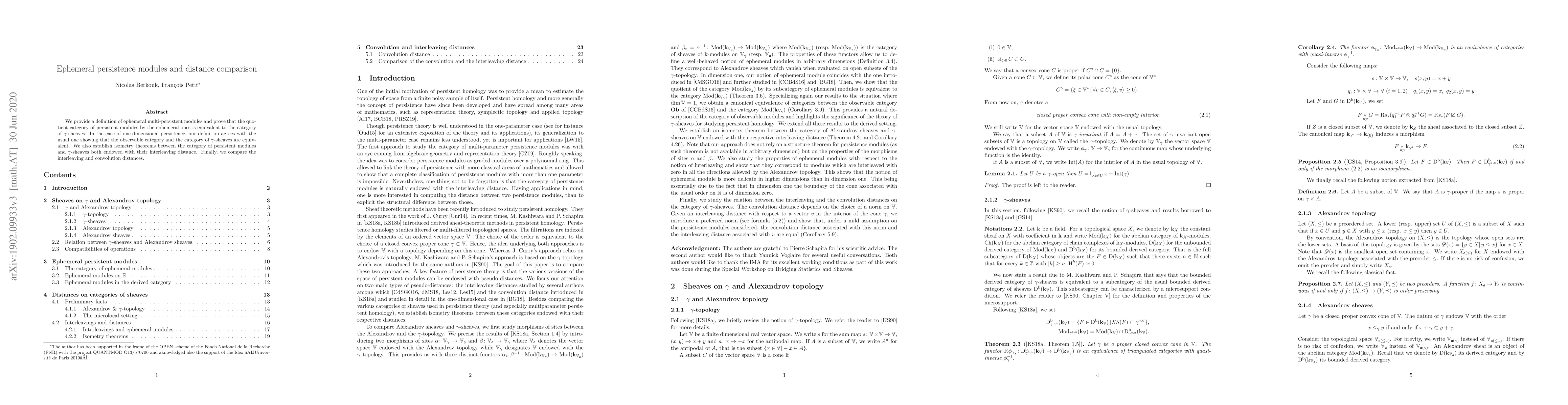 This paper defines ephemeral multi-persistent modules and shows they form a quotient category equivalent to $\gamma$-sheaves. It establishes isometry theorems between persistent modules and $\gamma$-sheaves using interleaving distance and compares interleaving and convolution distances.