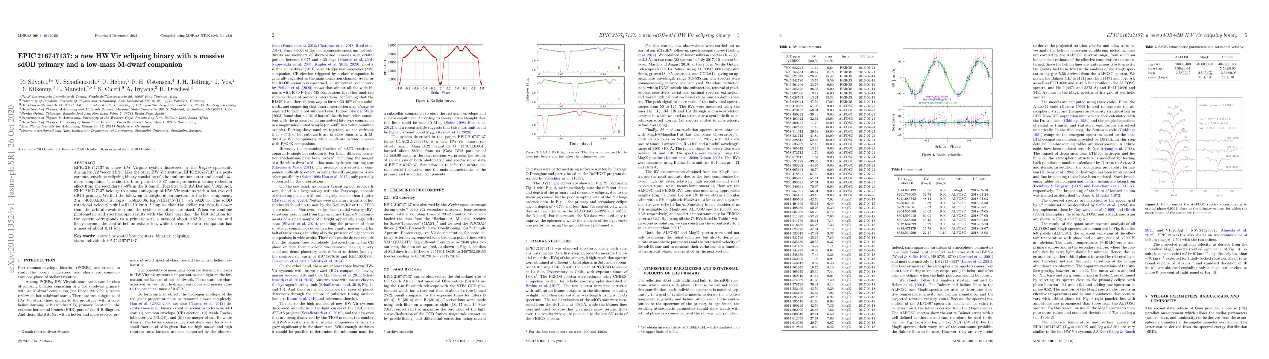 EPIC 216747137 is a new HW~Virginis system discovered by the Kepler spacecraft during its K2 "second life". Like the other HW Vir systems, EPIC 216747137 is a post-common-envelope eclipsing binary consisting of a hot subluminous star and a cool low-mass companion. The short orbital period of 3.87 hours produces a strong reflection effect from the secondary (~9% in the R band). Together with AA Dor and V1828 Aql, EPIC 216747137 belongs to a small subgroup of HW Vir systems with a hot evolved sdOB primary. We find the following atmospheric parameters for the hot component: Teff=40400$\pm$1000 K, logg=5.56$\pm$0.06, log(N(He)/N(H))=$-$2.59$\pm$0.05. The sdOB rotational velocity vsini=51$\pm$10 km/s implies that the stellar rotation is slower than the orbital revolution and the system is not synchronized. When we combine photometric and spectroscopic results with the Gaia parallax, the best solution for the system corresponds to a primary with a mass of about 0.62 Msun close to, and likely beyond, the central helium exhaustion, while the cool M-dwarf companion has a mass of about 0.11 Msun.