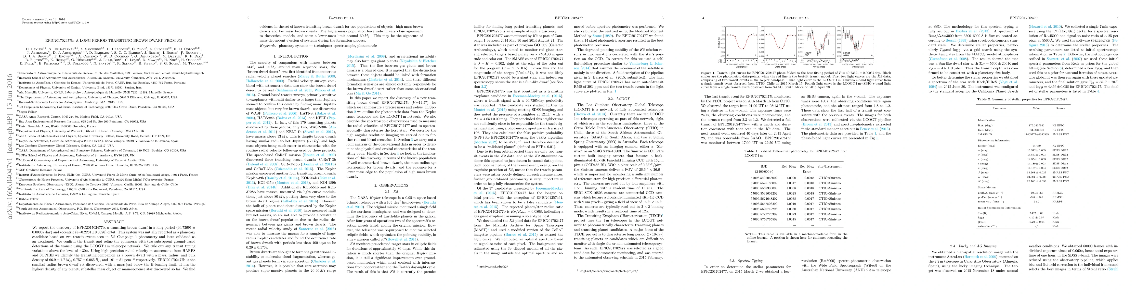 EPIC201702477b is a long-period transiting brown dwarf with a 40.7-day orbit and an eccentricity of 0.228. It has the smallest radius and highest density of any known substellar object, suggesting it is just below the hydrogen-burning limit.