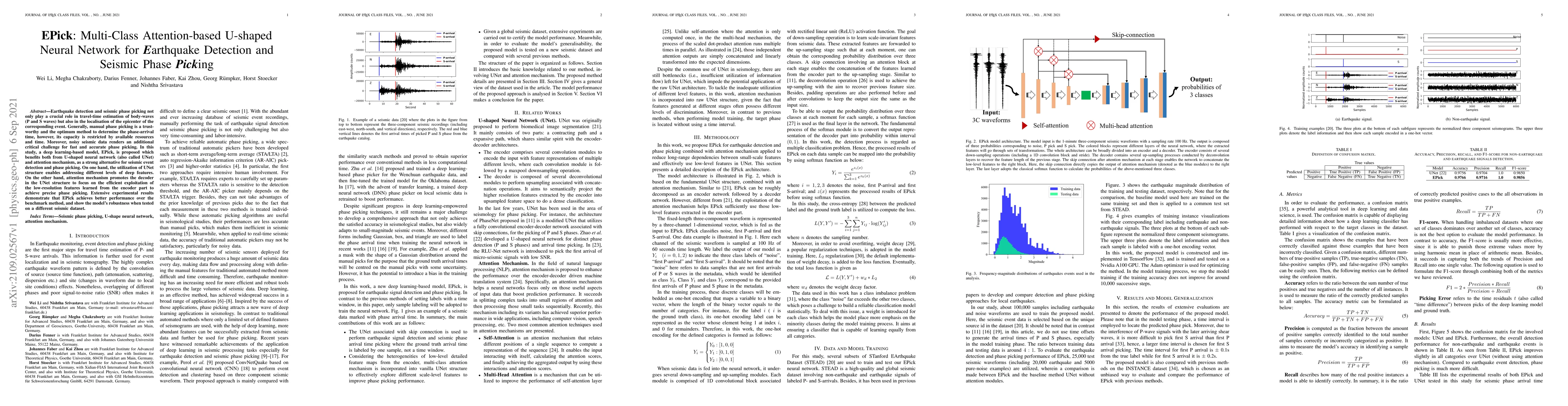 EPick, a multi-class attention-based U-shaped neural network, is proposed for earthquake detection and seismic phase picking, offering a robust alternative to manual methods. The model combines UNet's deep feature extraction with an attention mechanism to enhance precise phase picking, outperforming benchmark methods in extensive experiments.