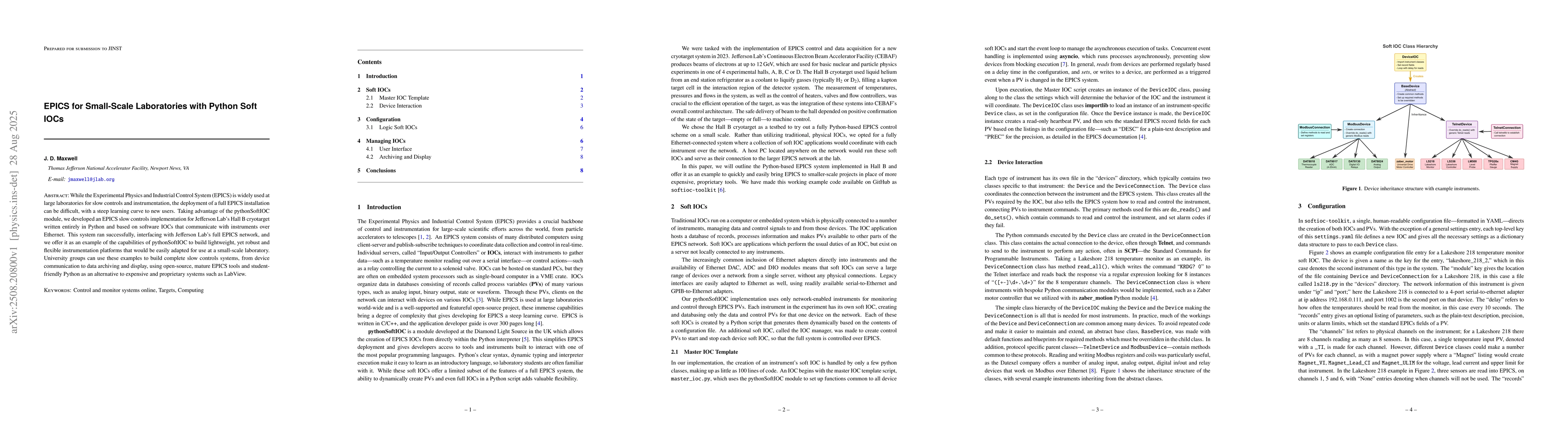 While the Experimental Physics and Industrial Control System (EPICS) is widely used at large laboratories for slow controls and instrumentation, the deployment of a full EPICS installation can be difficult, with a steep learning curve to new users. Taking advantage of the pythonSoftIOC module, we developed an EPICS slow controls implementation for Jefferson Lab's Hall B cryotarget written entirely in Python and based on software IOCs that communicate with instruments over Ethernet. This system ran successfully, interfacing with Jefferson Lab's full EPICS network, and we offer it as an example of the capabilities of pythonSoftIOC to build lightweight, yet robust and flexible instrumentation platforms that would be easily adapted for use at a small-scale laboratory. University groups can use these examples to build complete slow controls systems, from device communication to data archiving and display, using open-source, mature EPICS tools and student-friendly Python as an alternative to expensive and proprietary systems such as LabView.