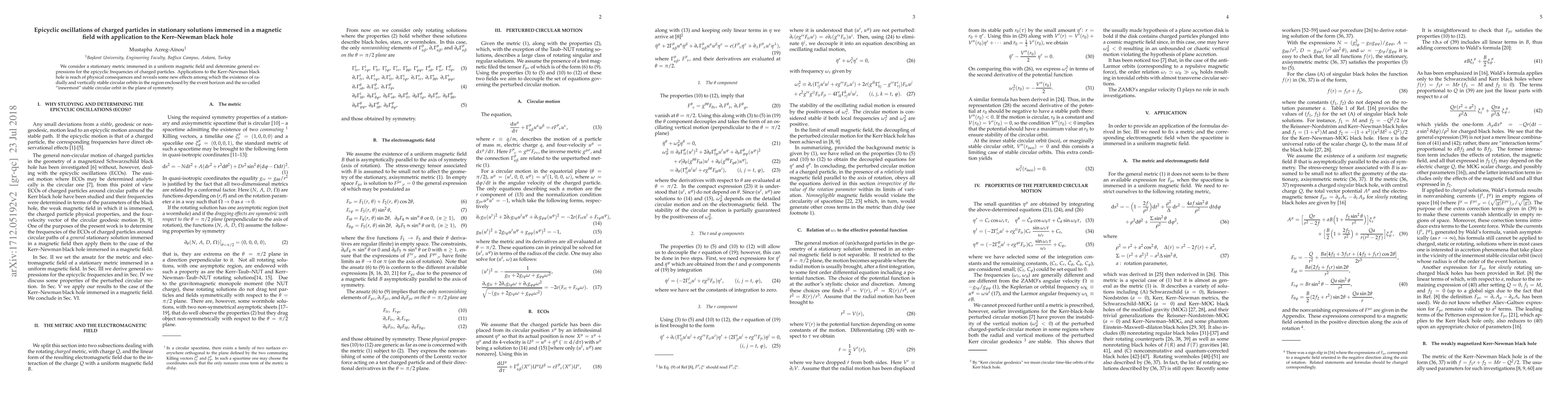 We consider a stationary metric immersed in a uniform magnetic field and determine general expressions for the epicyclic frequencies of charged particles. Applications to the Kerr--Newman black hole is reach of physical consequences and reveals some new effects among which the existence of radially and vertically stable circular orbits in the region enclosed by the event horizon and the so-called {\textquotedblleft innermost\textquotedblright} stable circular orbit in the plane of symmetry.