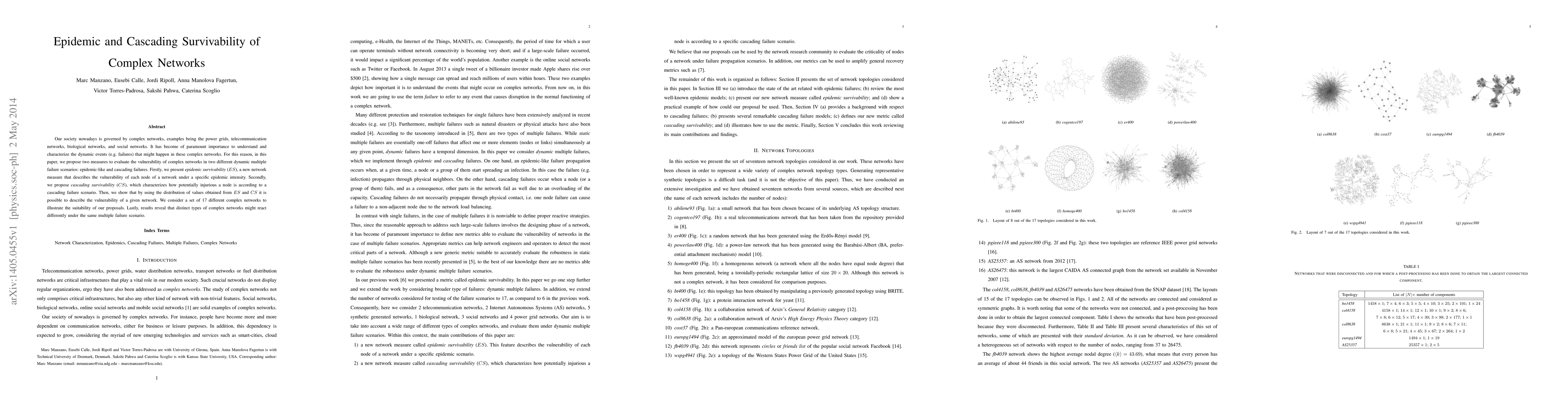 This paper introduces two measures, epidemic survivability ($ES$) and cascading survivability ($CS$), to evaluate the vulnerability of complex networks under different failure scenarios. The study demonstrates that these measures can effectively describe network vulnerability across 17 diverse networks, revealing distinct reactions to multiple failure events.