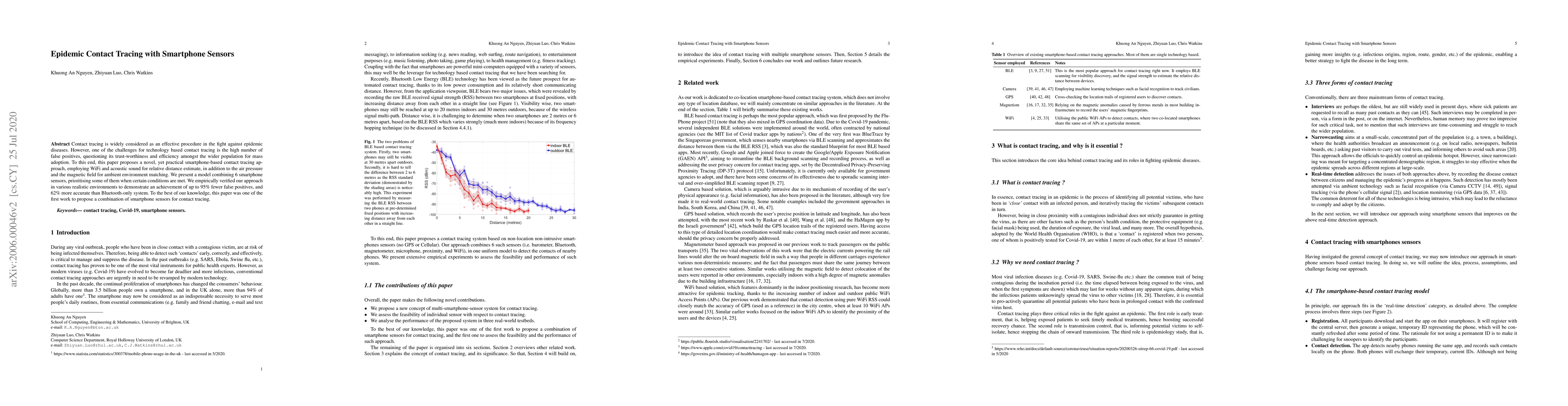 A new smartphone-based contact tracing approach combining 6 sensors achieves up to 95% fewer false positives compared to Bluetooth-only systems.