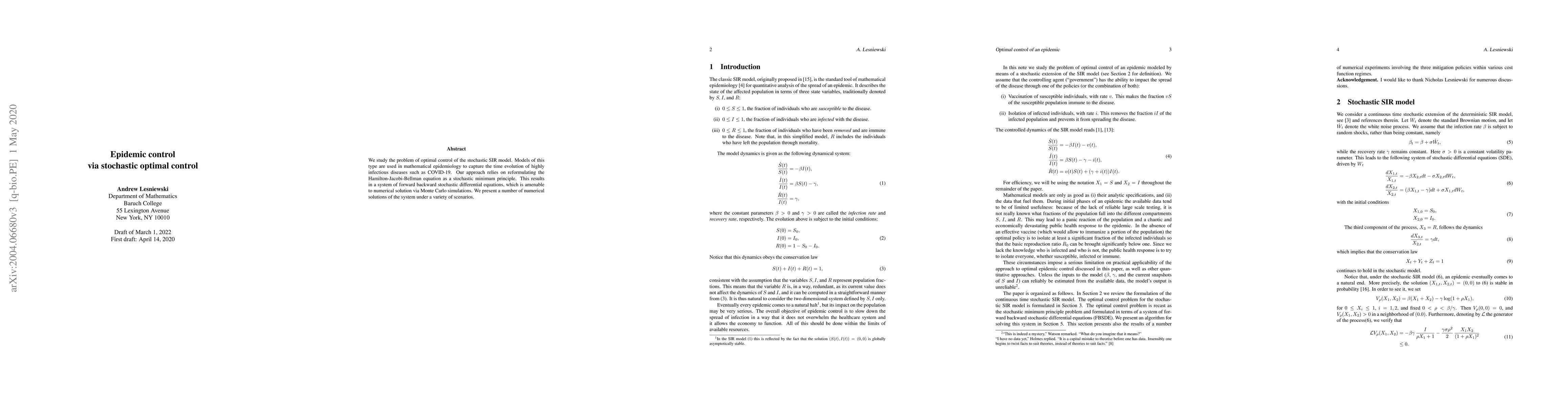 Researchers developed a new method to control epidemics using stochastic optimal control, reformulating the Hamilton-Jacobi-Bellman equation as a system of forward backward stochastic differential equations for numerical solution via Monte Carlo simulations.