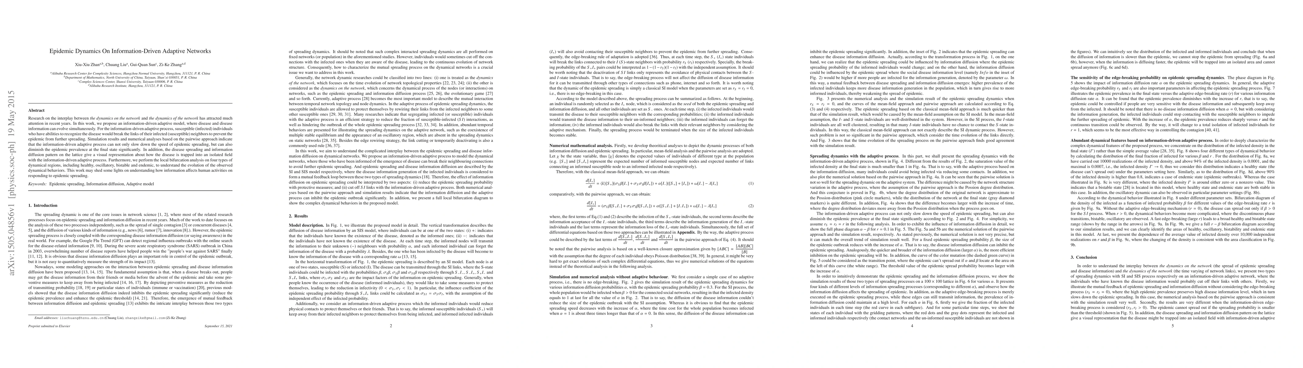 This paper investigates how information-driven adaptive networks can slow down epidemic spreading and reduce final prevalence through link-breaking mechanisms. Simulation results show significant reduction in epidemic spread and prevalence, with local bifurcation analysis revealing the dynamics of different regions.