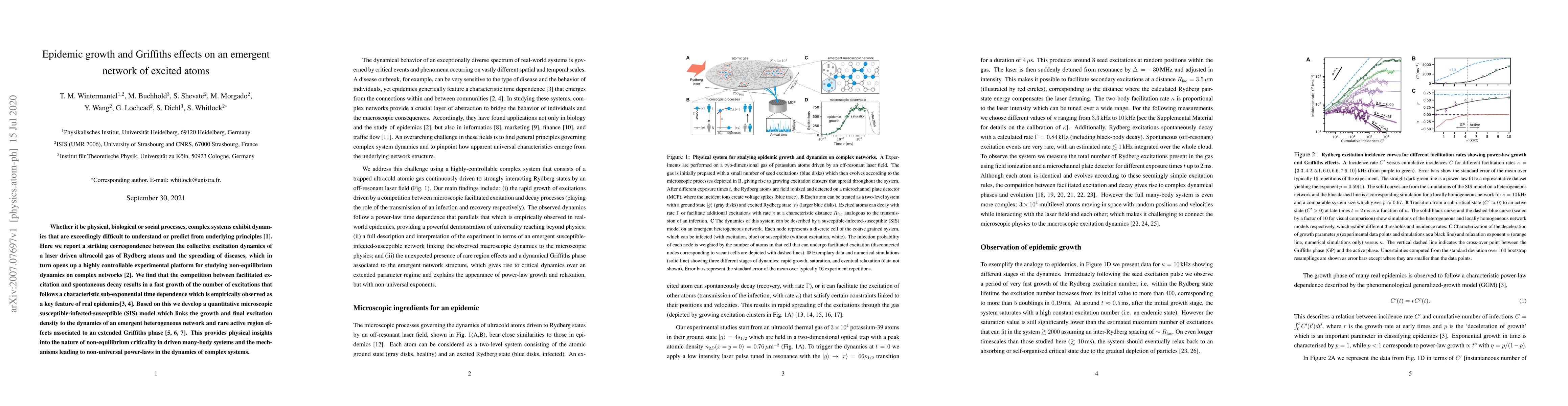 Whether it be physical, biological or social processes, complex systems exhibit dynamics that are exceedingly difficult to understand or predict from underlying principles. Here we report a striking correspondence between the collective excitation dynamics of a laser driven ultracold gas of Rydberg atoms and the spreading of diseases, which in turn opens up a highly controllable experimental platform for studying non-equilibrium dynamics on complex networks. We find that the competition between facilitated excitation and spontaneous decay results in a fast growth of the number of excitations that follows a characteristic sub-exponential time dependence which is empirically observed as a key feature of real epidemics. Based on this we develop a quantitative microscopic susceptible-infected-susceptible (SIS) model which links the growth and final excitation density to the dynamics of an emergent heterogeneous network and rare active region effects associated to an extended Griffiths phase. This provides physical insights into the nature of non-equilibrium criticality in driven many-body systems and the mechanisms leading to non-universal power-laws in the dynamics of complex systems.