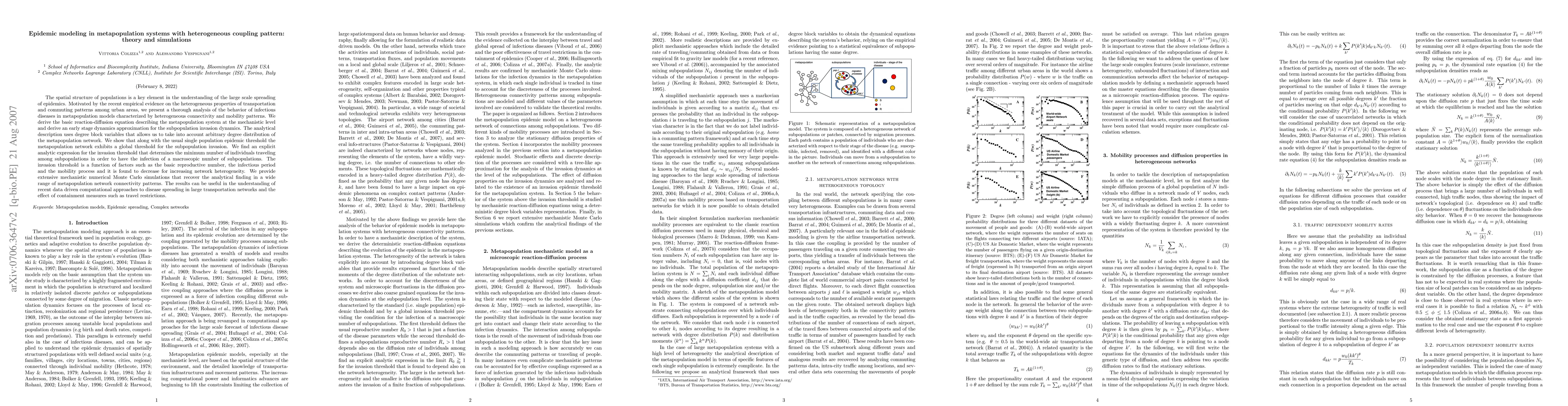 This paper develops a theoretical framework for modeling epidemics in metapopulation systems with heterogeneous connectivity, deriving a reaction-diffusion equation and an early-stage dynamics approximation. The study finds a global epidemic threshold for subpopulation invasion, influenced by factors like the basic reproductive number and network heterogeneity, validated through extensive numerical simulations.