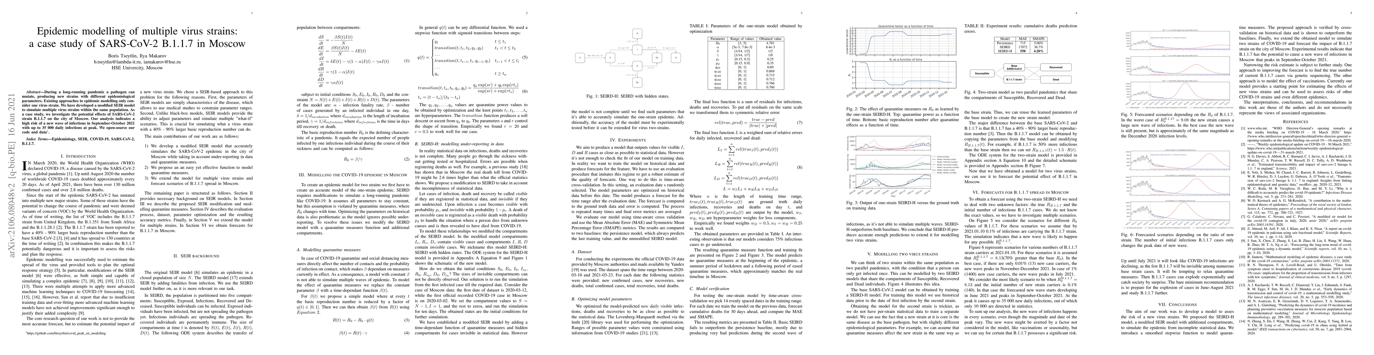 During a long-running pandemic a pathogen can mutate, producing new strains with different epidemiological parameters. Existing approaches to epidemic modelling only consider one virus strain. We have developed a modified SEIR model to simulate multiple virus strains within the same population. As a case study, we investigate the potential effects of SARS-CoV-2 strain B.1.1.7 on the city of Moscow. Our analysis indicates a high risk of a new wave of infections in September-October 2021 with up to 35 000 daily infections at peak. We open-source our code and data.