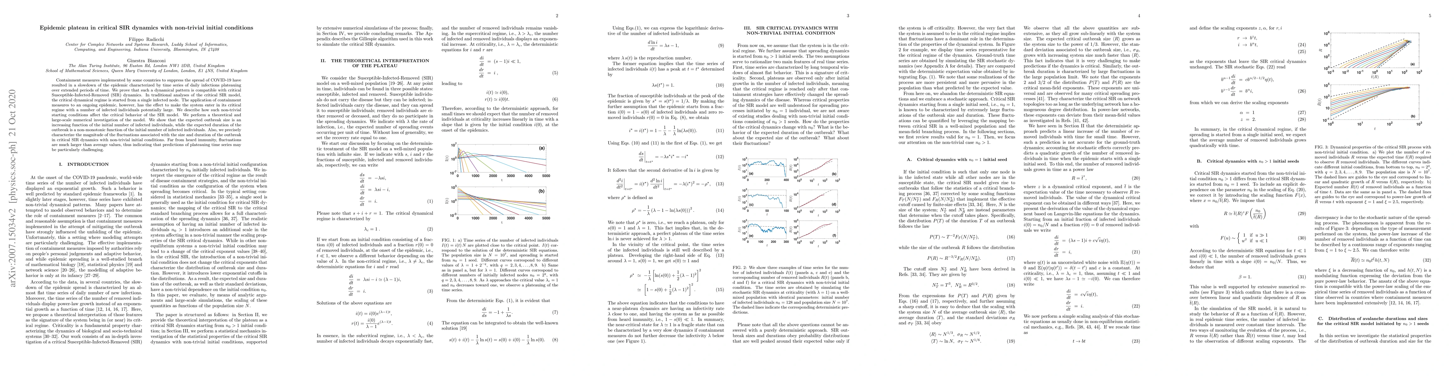 Containment measures implemented by some countries to suppress the spread of COVID-19 have resulted in a slowdown of the epidemic characterized by time series of daily infections plateauing over extended periods of time. We prove that such a dynamical pattern is compatible with critical Susceptible-Infected-Removed (SIR) dynamics. In traditional analyses of the critical SIR model, the critical dynamical regime is started from a single infected node. The application of containment measures to an ongoing epidemic, however, has the effect to make the system enter in its critical regime with a number of infected individuals potentially large. We describe how such non-trivial starting conditions affect the critical behavior of the SIR model. We perform a theoretical and large-scale numerical investigation of the model. We show that the expected outbreak size is an increasing function of the initial number of infected individuals, while the expected duration of the outbreak is a non-monotonic function of the initial number of infected individuals. Also, we precisely characterize the magnitude of the fluctuations associated with the size and duration of the outbreak in critical SIR dynamics with non-trivial initial conditions. Far from heard immunity, fluctuations are much larger than average values, thus indicating that predictions of plateauing time series may be particularly challenging.