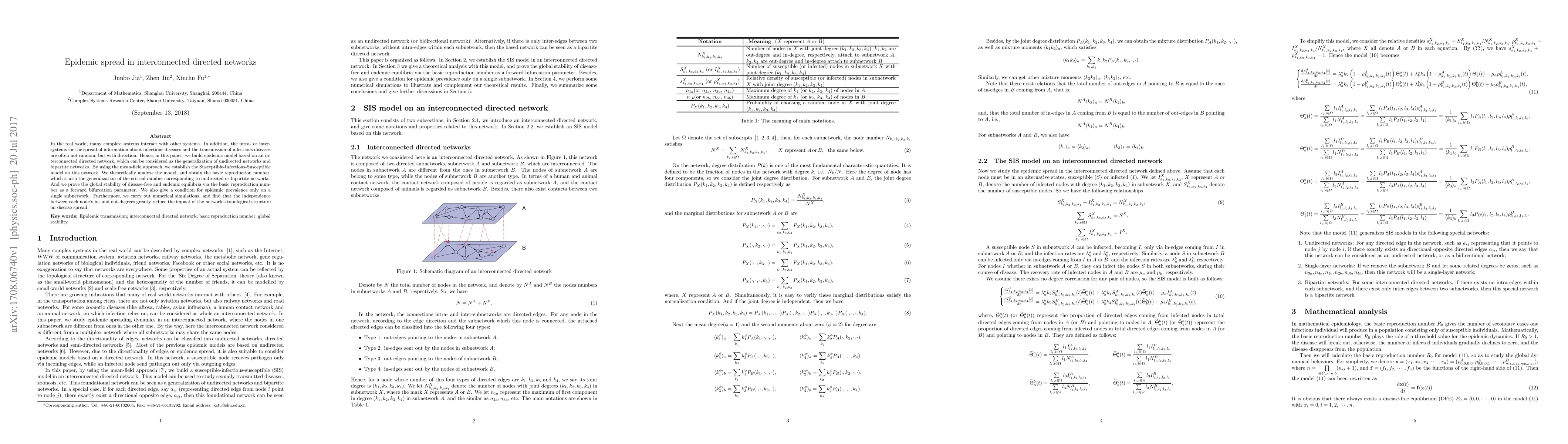 This paper develops an epidemic model for interconnected directed networks, generalizing undirected and bipartite networks. It uses a mean-field approach to establish a Susceptible-Infectious-Susceptible model, analyzes the model's theoretical properties, and proves the global stability of equilibria based on the basic reproduction number. Numerical simulations show that the independence of in- and out-degrees reduces the impact of network topology on disease spread.