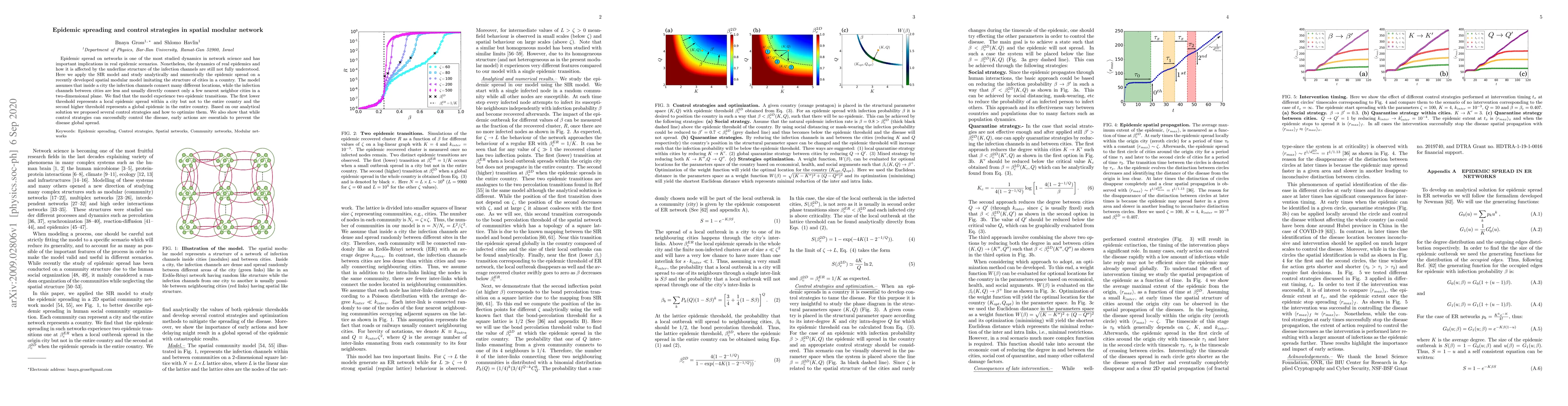 This paper studies epidemic spread using the SIR model on a spatial modular network that mimics city structures. The study reveals two epidemic thresholds: one for local spread within cities and another for global spread across the country. Control strategies are proposed to optimize disease prevention, emphasizing the importance of early intervention.