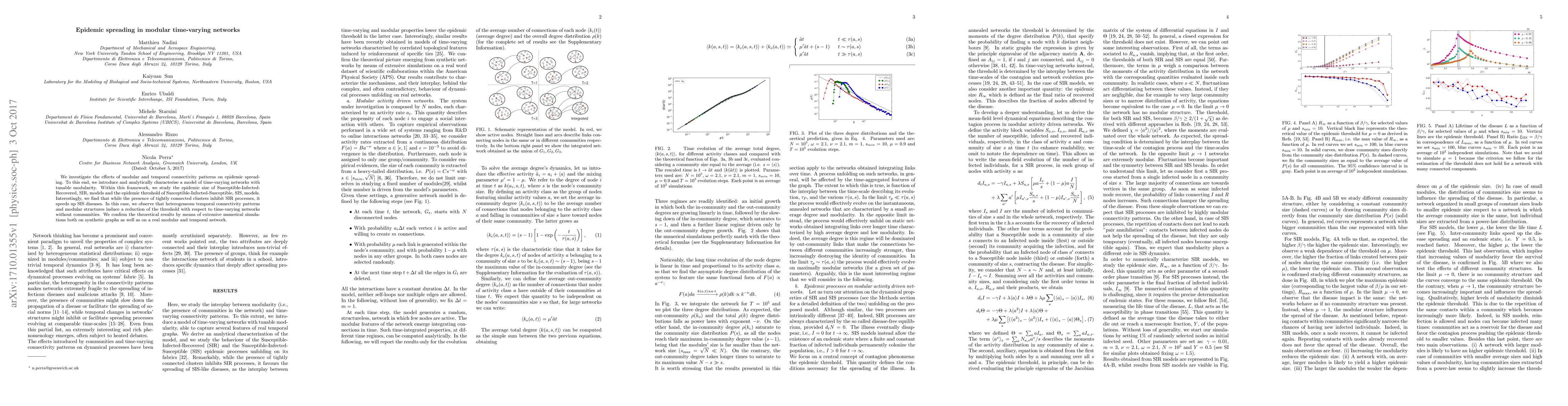 This paper examines how modular and time-varying connectivity patterns influence epidemic spreading in networks, finding that while modularity inhibits SIR processes, it accelerates SIS diseases by reducing the epidemic threshold. Theoretical results are validated through numerical simulations on both synthetic and real-world modular networks.