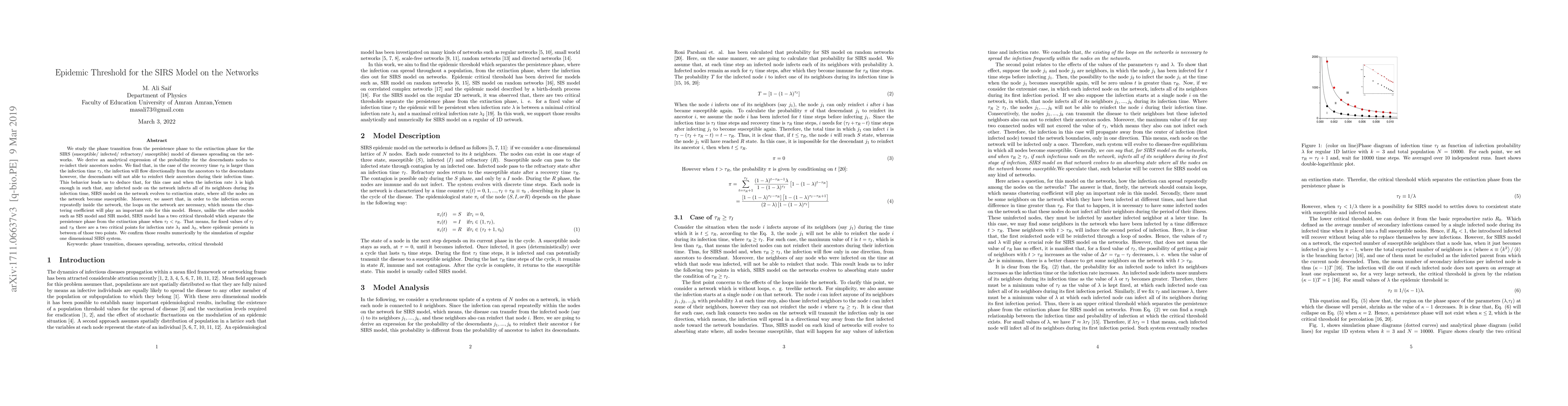 An analytical expression for the probability of descendant nodes re-infecting ancestral nodes in the SIRS model on networks, along with the identification of two critical thresholds for phase transitions.