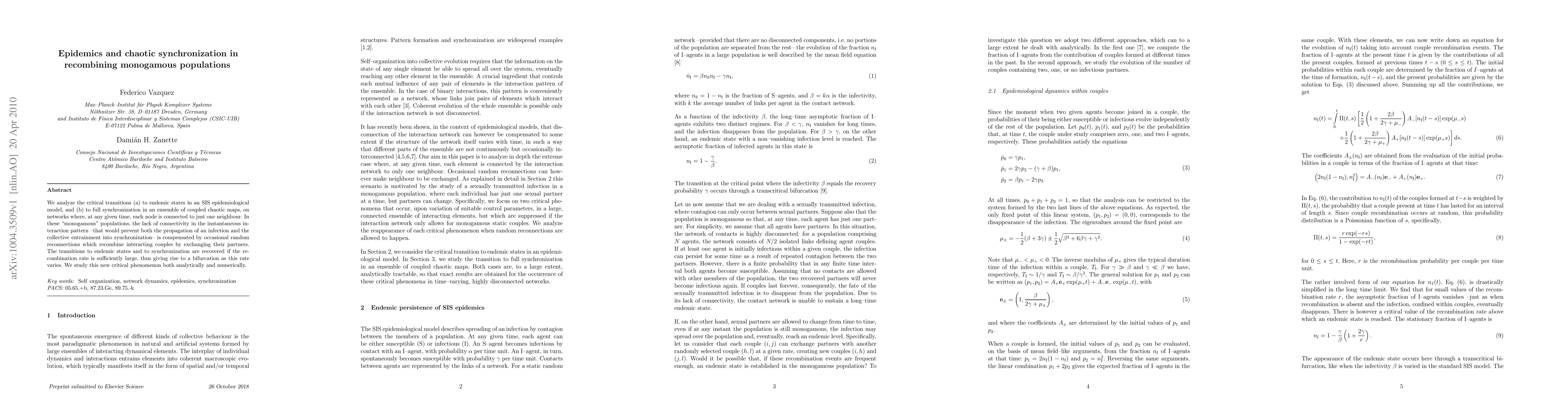 We analyze the critical transitions (a) to endemic states in an SIS epidemiological model, and (b) to full synchronization in an ensemble of coupled chaotic maps, on networks where, at any given time, each node is connected to just one neighbour. In these "monogamous" populations, the lack of connectivity in the instantaneous interaction pattern -that would prevent both the propagation of an infection and the collective entrainment into synchronization- is compensated by occasional random reconnections which recombine interacting couples by exchanging their partners. The transitions to endemic states and to synchronization are recovered if the recombination rate is sufficiently large, thus giving rise to a bifurcation as this rate varies. We study this new critical phenomenon both analytically and numerically.