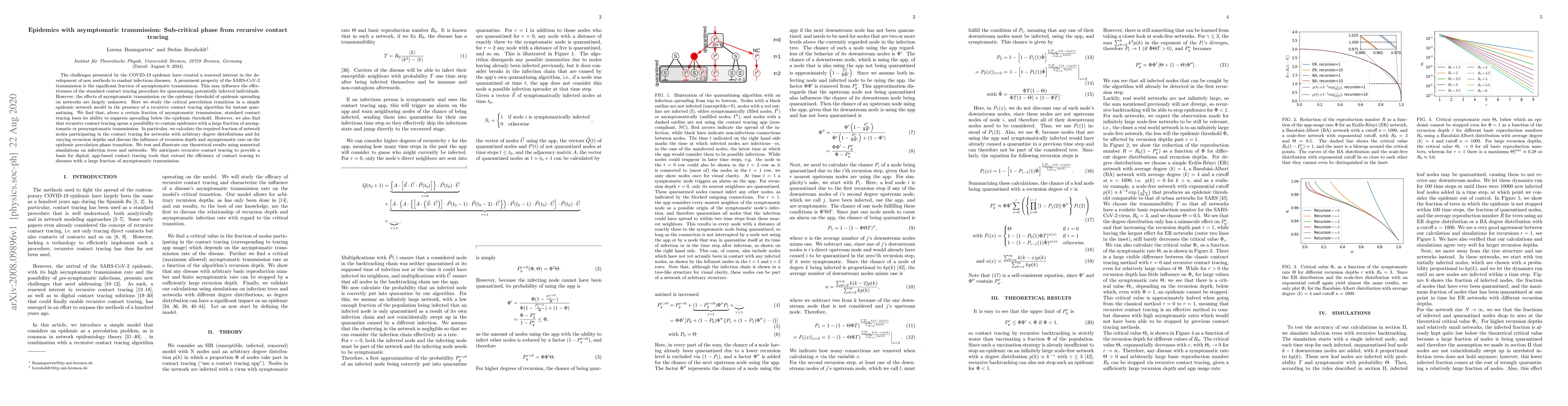 This paper explores the impact of asymptomatic transmission on epidemic thresholds and the effectiveness of contact tracing methods. It finds that recursive contact tracing can effectively contain epidemics even with significant asymptomatic transmission, providing a theoretical basis for advanced digital contact tracing tools.