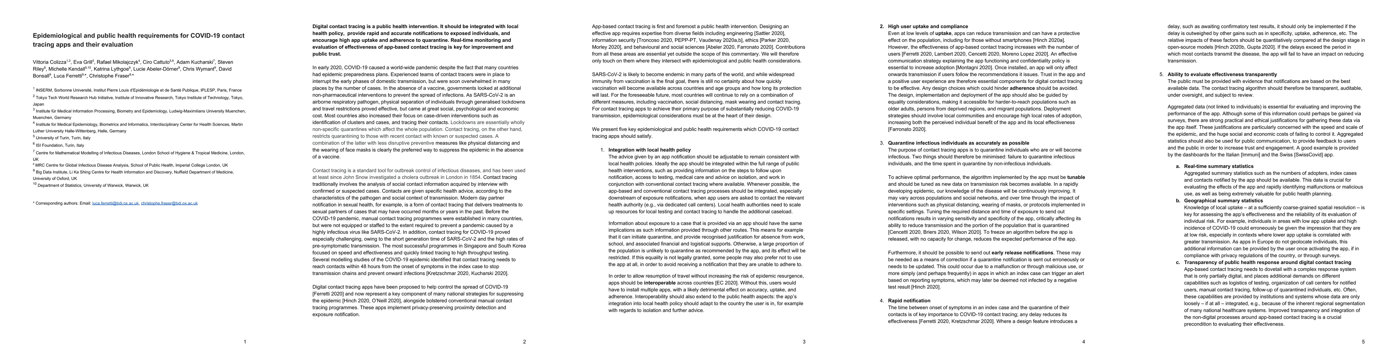 Digital contact tracing apps should provide accurate notifications and encourage high adoption to combat COVID-19 effectively. Real-time monitoring is crucial for improvement and public trust.