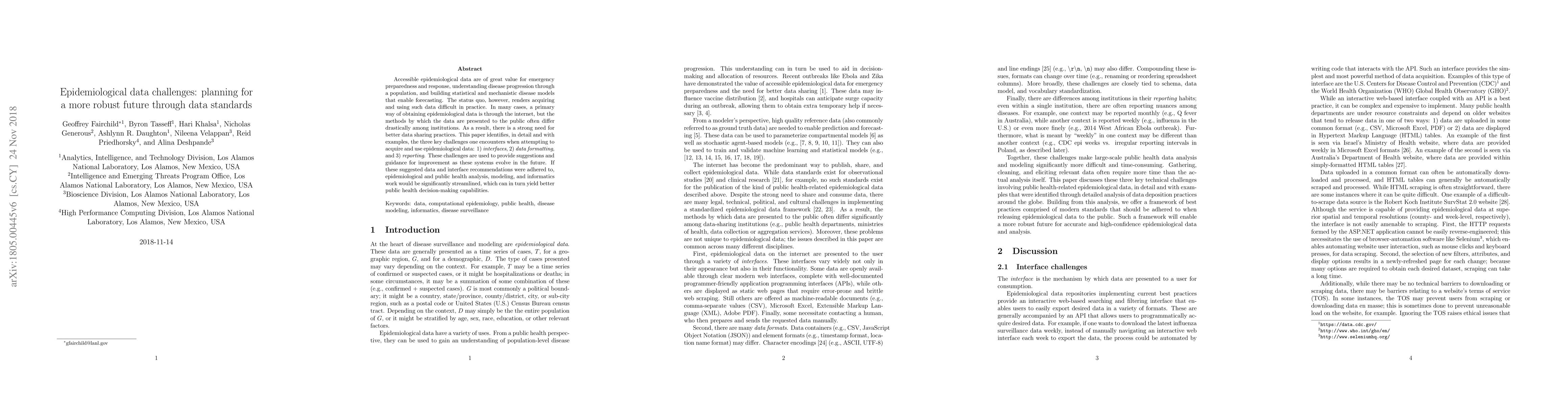 Accessible epidemiological data are of great value for emergency preparedness and response, understanding disease progression through a population, and building statistical and mechanistic disease models that enable forecasting. The status quo, however, renders acquiring and using such data difficult in practice. In many cases, a primary way of obtaining epidemiological data is through the internet, but the methods by which the data are presented to the public often differ drastically among institutions. As a result, there is a strong need for better data sharing practices. This paper identifies, in detail and with examples, the three key challenges one encounters when attempting to acquire and use epidemiological data: 1) interfaces, 2) data formatting, and 3) reporting. These challenges are used to provide suggestions and guidance for improvement as these systems evolve in the future. If these suggested data and interface recommendations were adhered to, epidemiological and public health analysis, modeling, and informatics work would be significantly streamlined, which can in turn yield better public health decision-making capabilities.