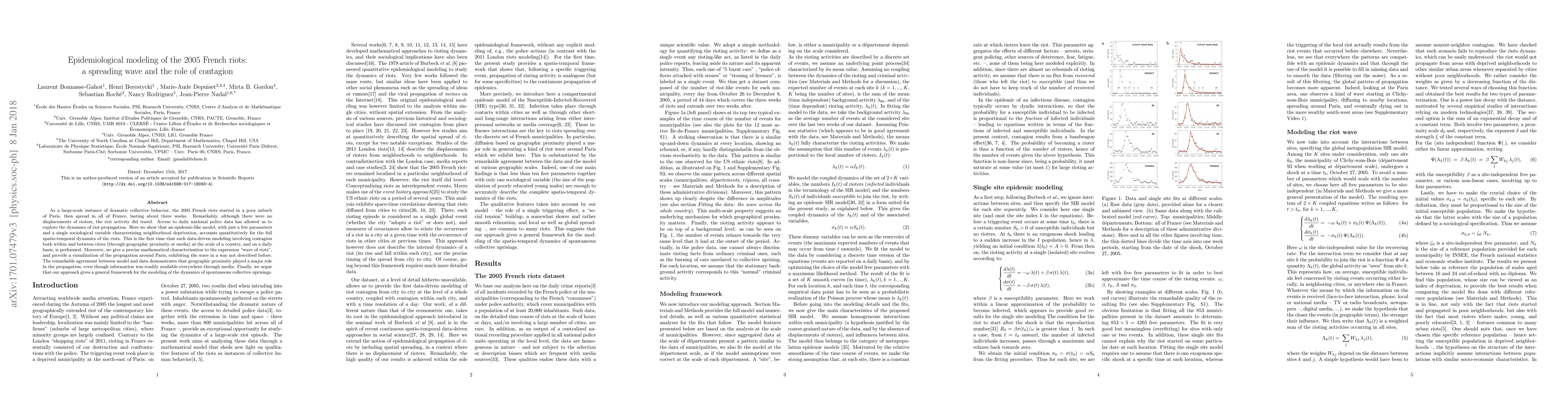 As a large-scale instance of dramatic collective behaviour, the 2005 French riots started in a poor suburb of Paris, then spread in all of France, lasting about three weeks. Remarkably, although there were no displacements of rioters, the riot activity did travel. Access to daily national police data has allowed us to explore the dynamics of riot propagation. Here we show that an epidemic-like model, with just a few parameters and a single sociological variable characterizing neighbourhood deprivation, accounts quantitatively for the full spatio-temporal dynamics of the riots. This is the first time that such data-driven modelling involving contagion both within and between cities (through geographic proximity or media) at the scale of a country, and on a daily basis, is performed. Moreover, we give a precise mathematical characterization to the expression "wave of riots", and provide a visualization of the propagation around Paris, exhibiting the wave in a way not described before. The remarkable agreement between model and data demonstrates that geographic proximity played a major role in the propagation, even though information was readily available everywhere through media. Finally, we argue that our approach gives a general framework for the modelling of the dynamics of spontaneous collective uprisings.