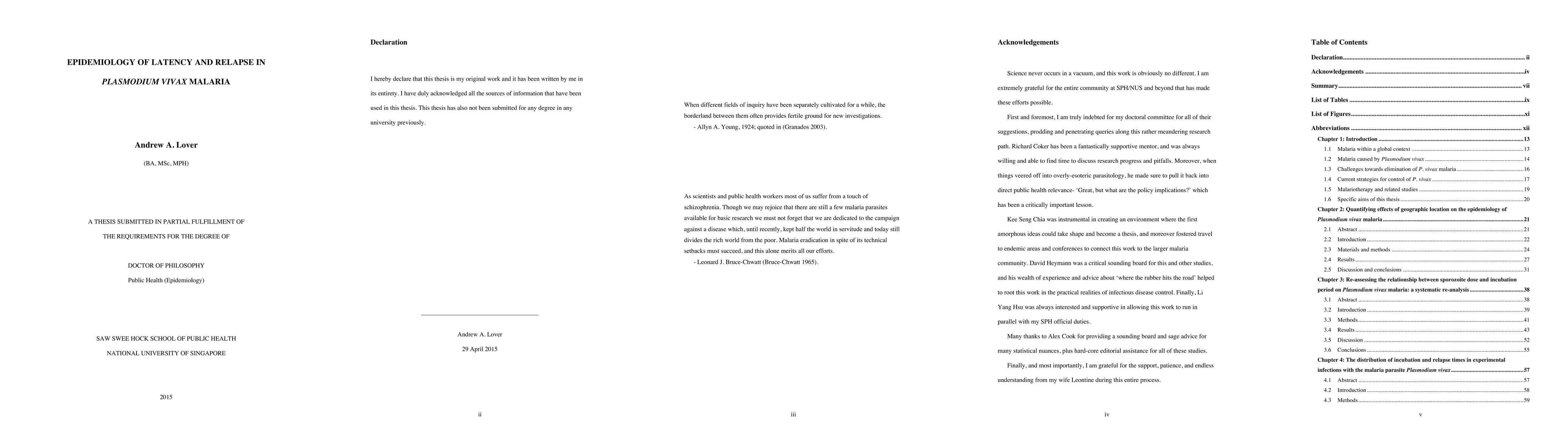 This research critically examines the epidemiology of Plasmodium vivax malaria, focusing on latency and relapse patterns, and their geographic variation. It aims to reassess historical data and inform global malaria elimination strategies by providing modern epidemiological analyses and mathematical models.