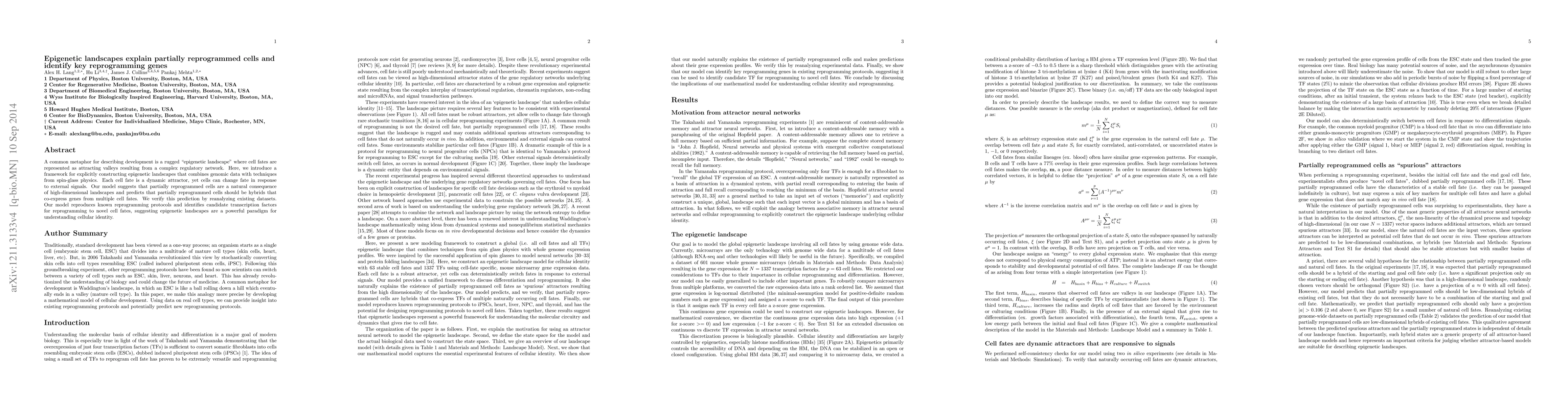 A common metaphor for describing development is a rugged "epigenetic landscape" where cell fates are represented as attracting valleys resulting from a complex regulatory network. Here, we introduce a framework for explicitly constructing epigenetic landscapes that combines genomic data with techniques from spin-glass physics. Each cell fate is a dynamic attractor, yet cells can change fate in response to external signals. Our model suggests that partially reprogrammed cells are a natural consequence of high-dimensional landscapes, and predicts that partially reprogrammed cells should be hybrids that co-express genes from multiple cell fates. We verify this prediction by reanalyzing existing datasets. Our model reproduces known reprogramming protocols and identifies candidate transcription factors for reprogramming to novel cell fates, suggesting epigenetic landscapes are a powerful paradigm for understanding cellular identity.