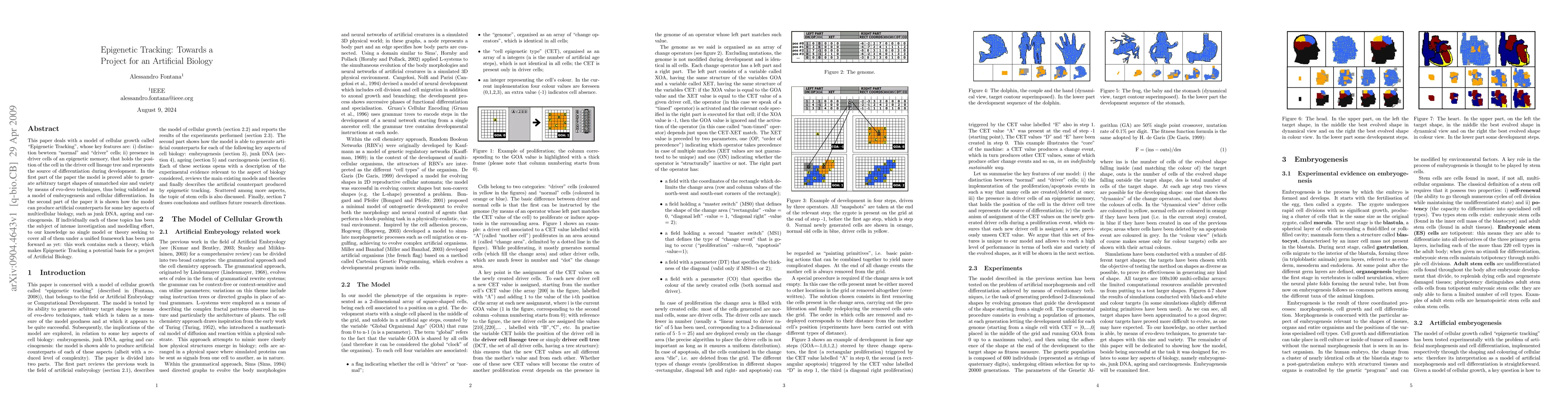 This paper deals with a model of cellular growth called "Epigenetic Tracking", whose key features are: i) distinction bewteen "normal" and "driver" cells; ii) presence in driver cells of an epigenetic memory, that holds the position of the cell in the driver cell lineage tree and represents the source of differentiation during development. In the first part of the paper the model is proved able to generate arbitrary target shapes of unmatched size and variety by means of evo-devo techniques, thus being validated as a model of embryogenesis and cellular differentiation. In the second part of the paper it is shown how the model can produce artificial counterparts for some key aspects of multicellular biology, such as junk DNA, ageing and carcinogenesis. If individually each of these topics has been the subject of intense investigation and modelling effort, to our knowledge no single model or theory seeking to cover all of them under a unified framework has been put forward as yet: this work contains such a theory, which makes Epigenetic Tracking a potential basis for a project of Artificial Biology.
