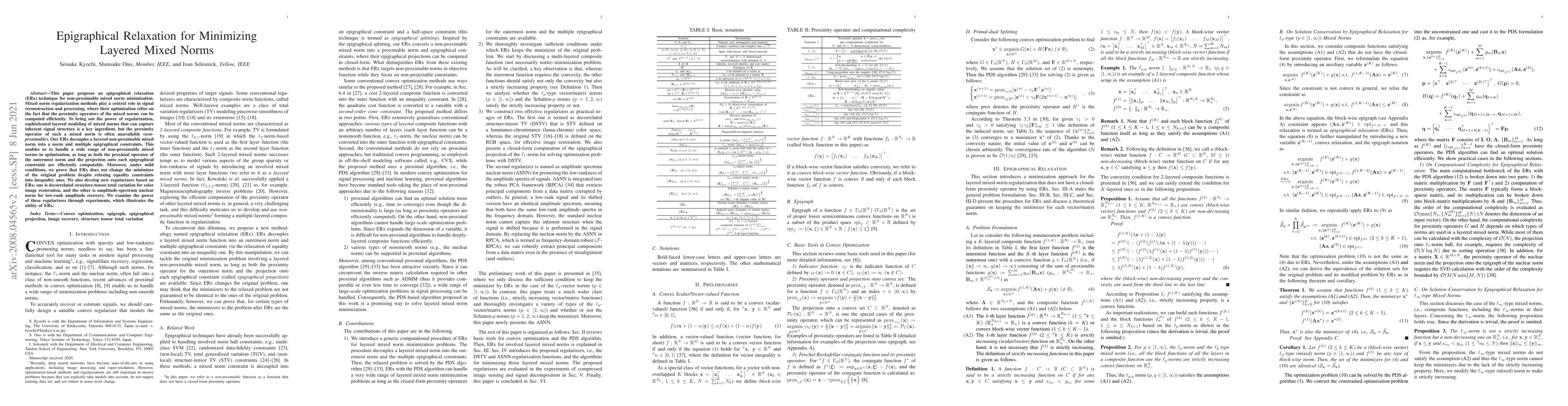 This paper introduces an epigraphical relaxation technique to tackle non-proximable mixed norm minimization, enabling optimization of sophisticated layered mixed norms in signal reconstruction. It demonstrates the effectiveness of this method through new regularizers and experimental validation.