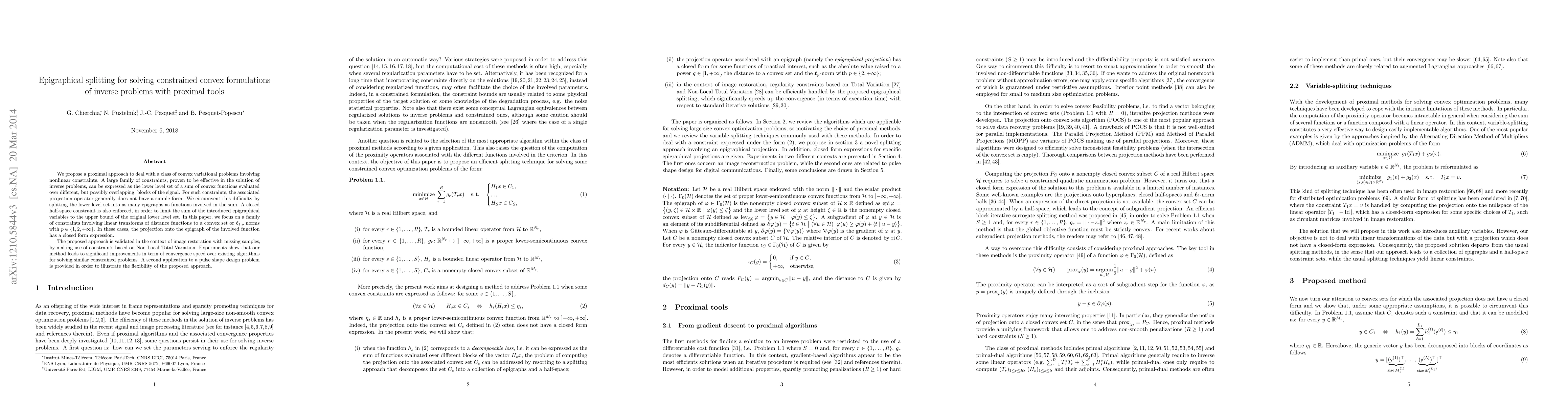 Researchers propose a new method to solve inverse problems with constrained convex formulations using epigraphical splitting, outperforming existing algorithms in image restoration tasks.
