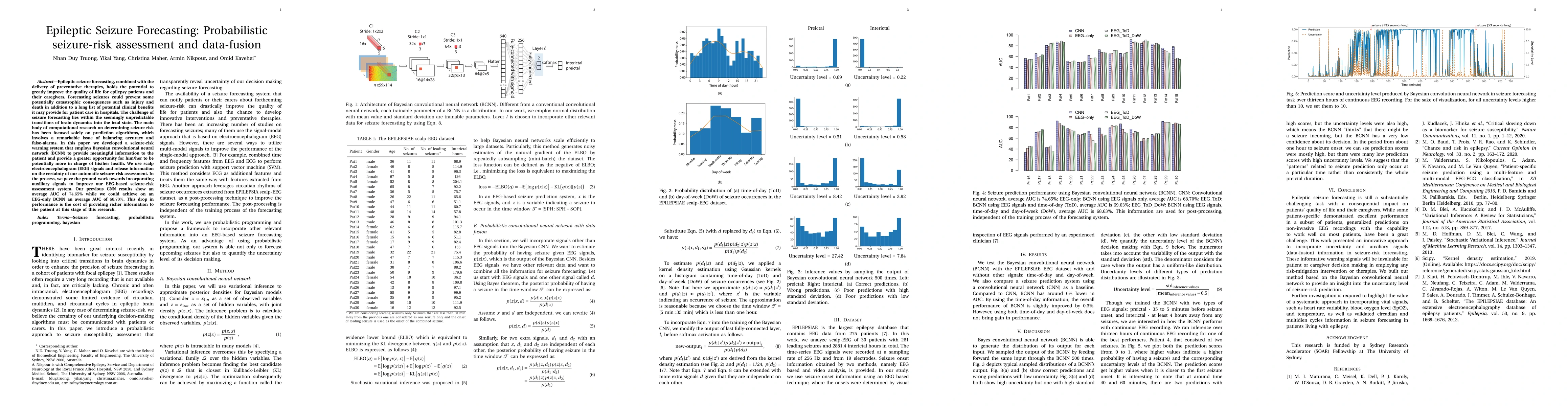 A Bayesian convolutional neural network (BCNN) was used to predict seizure risk from electroencephalography (EEG) signals.