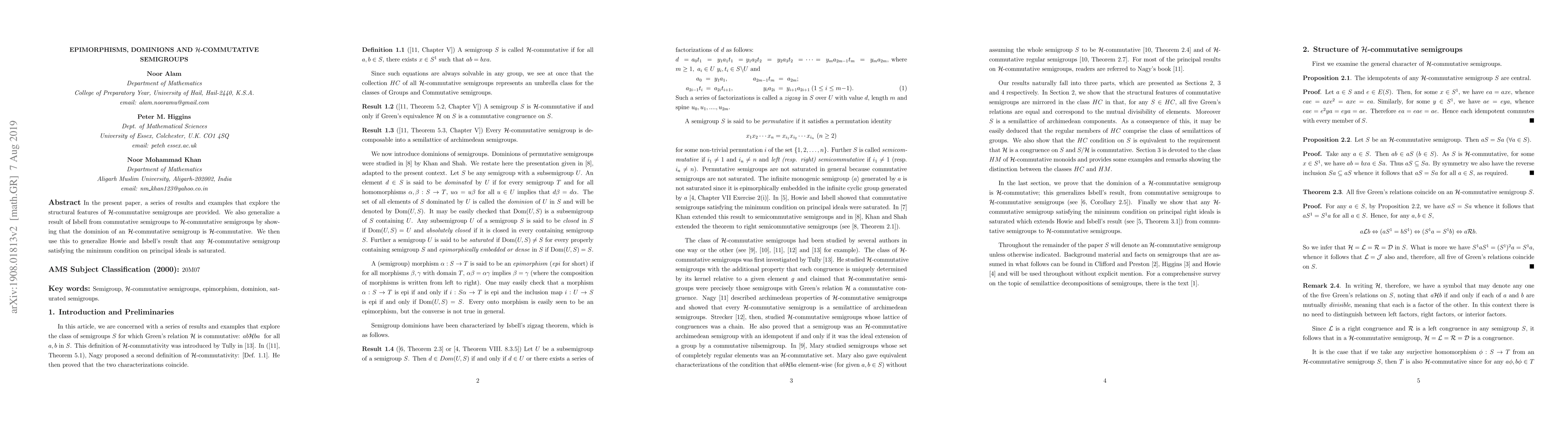 This paper explores structural features of H-commutative semigroups, generalizing results to dominions and proving a key implication for saturated semigroups.