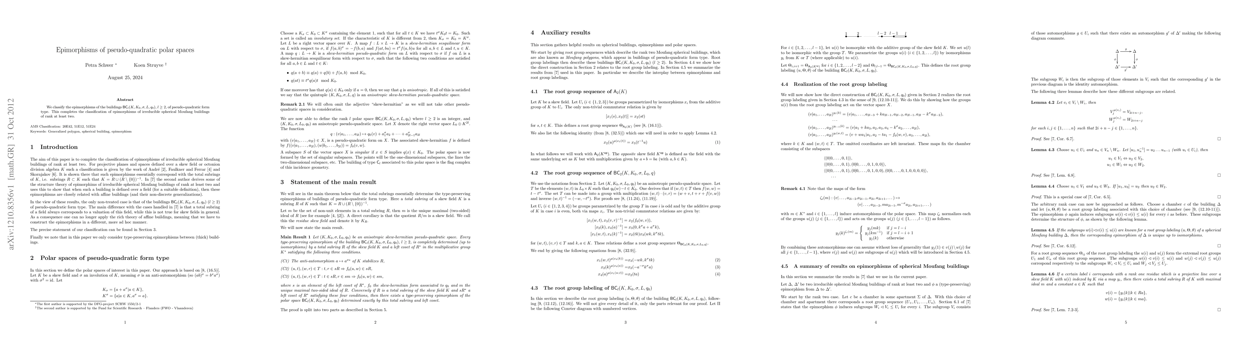 This paper classifies epimorphisms of pseudo-quadratic buildings of rank at least two, completing a key classification in the field of Moufang buildings.