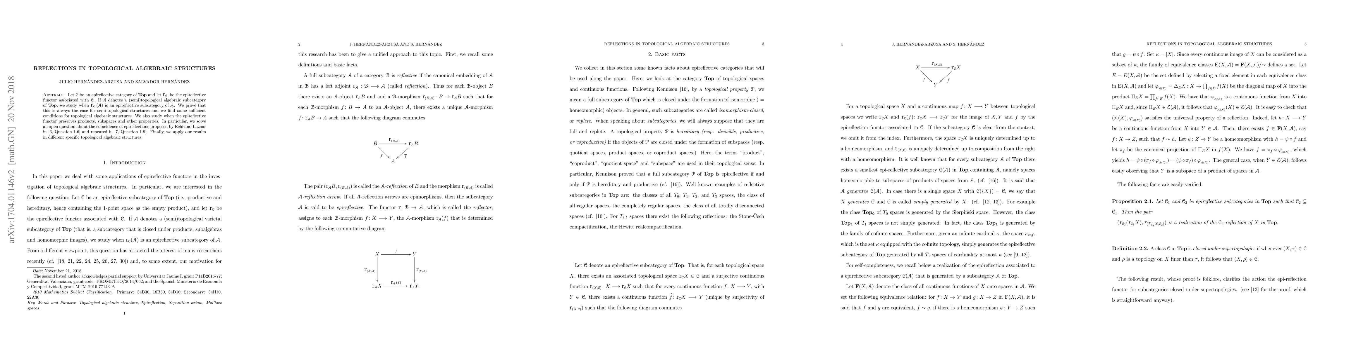 Let $\sR$ be an epireflective category of $\topo$ and let $F_\sR$\, be the epireflective functor associated with $\sR$. If $\sA$ denotes a (semi)topological algebraic subcategory of $\topo$, we study when $F_\sR\,(A)$ is an epireflective subcategory of $\sA$. We prove that this is always the case for semi-topological structures and we find some sufficient conditions for topological algebraic structures. We also study when the epireflective functor preserves products, subspaces and other properties. In particular, we solve an open question about the coincidence of epireflections proposed by Echi and Lazar in \cite[Question 1.6]{Echi:MPRIA} and repeated in \cite[Question 1.9]{Echi:TP}. Finally, we apply our results in different specific topological algebraic structures.