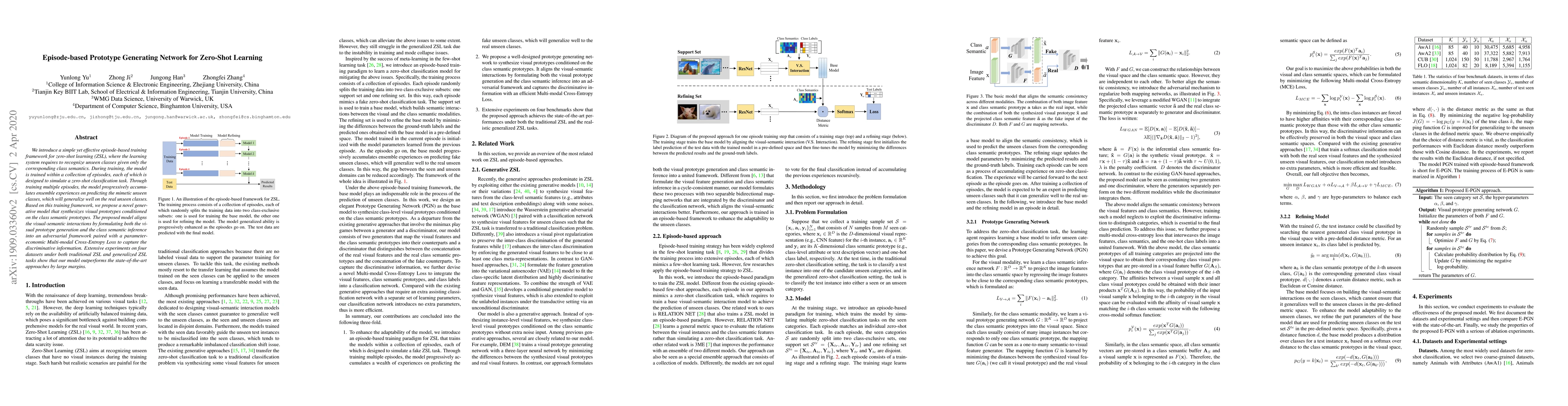We introduce a simple yet effective episode-based training framework for zero-shot learning (ZSL), where the learning system requires to recognize unseen classes given only the corresponding class semantics. During training, the model is trained within a collection of episodes, each of which is designed to simulate a zero-shot classification task. Through training multiple episodes, the model progressively accumulates ensemble experiences on predicting the mimetic unseen classes, which will generalize well on the real unseen classes. Based on this training framework, we propose a novel generative model that synthesizes visual prototypes conditioned on the class semantic prototypes. The proposed model aligns the visual-semantic interactions by formulating both the visual prototype generation and the class semantic inference into an adversarial framework paired with a parameter-economic Multi-modal Cross-Entropy Loss to capture the discriminative information. Extensive experiments on four datasets under both traditional ZSL and generalized ZSL tasks show that our model outperforms the state-of-the-art approaches by large margins.