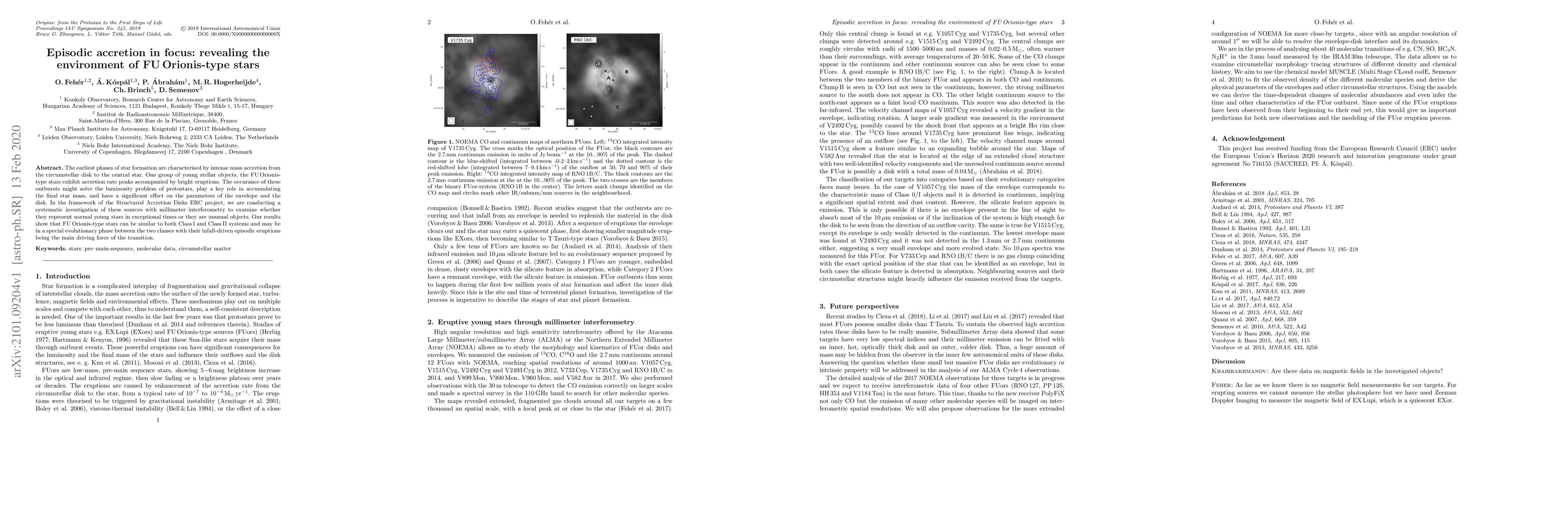 The earliest phases of star formation are characterised by intense mass accretion from the circumstellar disk to the central star. One group of young stellar objects, the FU Orionis-type stars exhibit accretion rate peaks accompanied by bright eruptions. The occurrence of these outbursts might solve the luminosity problem of protostars, play a key role in accumulating the final star mass, and have a significant effect on the parameters of the envelope and the disk. In the framework of the Structured Accretion Disks ERC project, we are conducting a systematic investigation of these sources with millimeter interferometry to examine whether they represent normal young stars in exceptional times or they are unusual objects. Our results show that FU Orionis-type stars can be similar to both Class I and Class II systems and may be in a special evolutionary phase between the two classes with their infall-driven episodic eruptions being the main driving force of the transition.