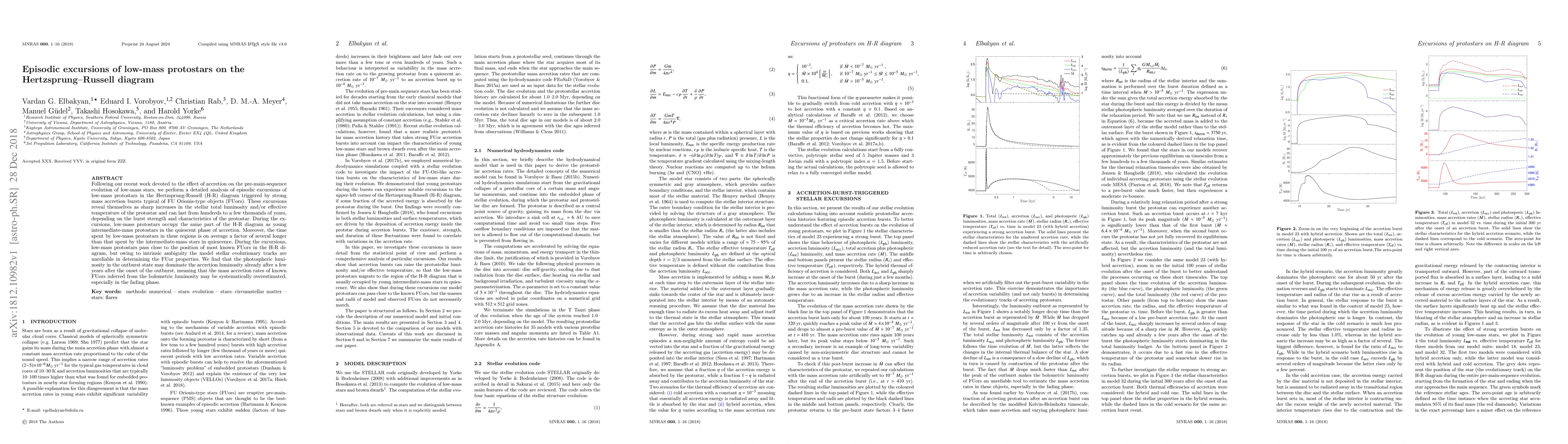 Following our recent work devoted to the effect of accretion on the pre-main-sequence evolution of low-mass stars, we perform a detailed analysis of episodic excursions of low-mass protostars in the Hertzsprung-Russell (H-R) diagram triggered by strong mass accretion bursts typical of FU Orionis-type objects (FUors). These excursions reveal themselves as sharp increases in the stellar total luminosity and/or effective temperature of the protostar and can last from hundreds to a few thousands of years, depending on the burst strength and characteristics of the protostar. During the excursions, low-mass protostars occupy the same part of the H-R diagram as young intermediate-mass protostars in the quiescent phase of accretion. Moreover, the time spent by low-mass protostars in these regions is on average a factor of several longer than that spent by the intermediate-mass stars in quiescence. During the excursions, low-mass protostars pass close to the position of most known FUors in the H-R diagram, but owing to intrinsic ambiguity the model stellar evolutionary tracks are unreliable in determining the FUor properties. We find that the photospheric luminosity in the outburst state may dominate the accretion luminosity already after a few years after the onset of the outburst, meaning that the mass accretion rates of known FUors inferred from the bolometric luminosity may be systematically overestimated, especially in the fading phase.