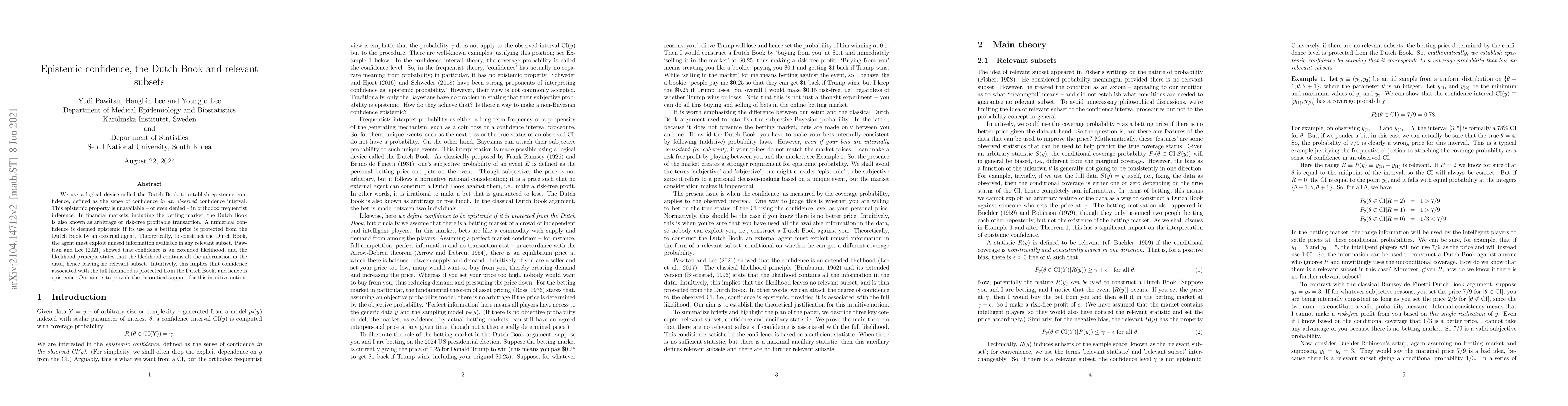 This paper establishes epistemic confidence as a protected quantity in financial markets using the Dutch Book, a logical device that detects arbitrage opportunities. It provides theoretical support for the idea that full likelihood-based confidence is epistemic.