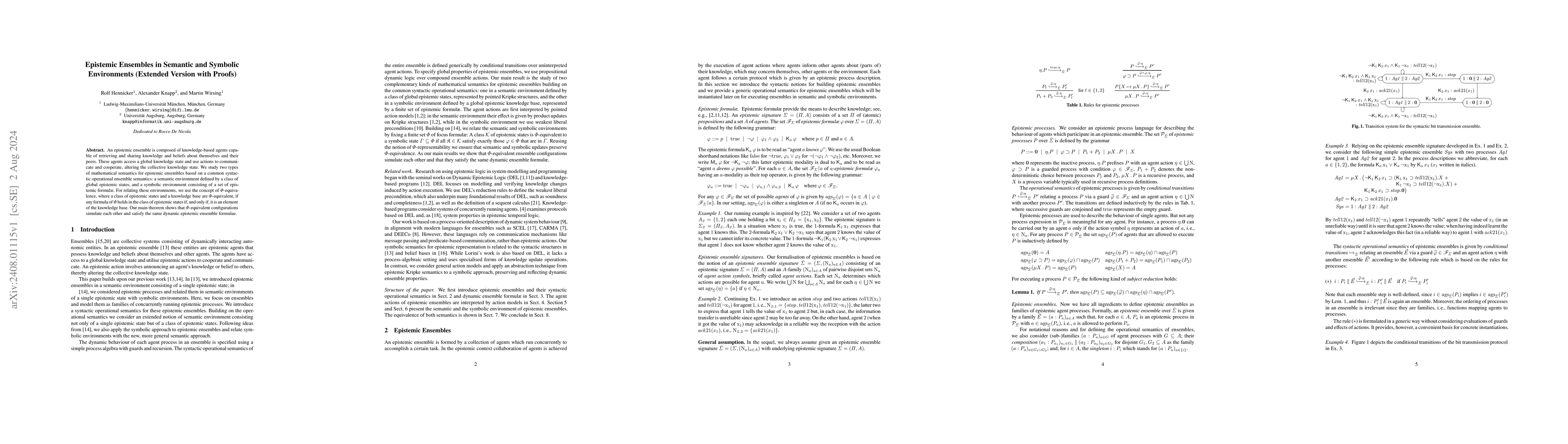 This research investigates epistemic ensembles of knowledge-based agents interacting in semantic and symbolic environments. It introduces two mathematical semantics for these ensembles and proves that configurations that are {\Phi}-equivalent simulate each other and satisfy the same dynamic epistemic formulae.