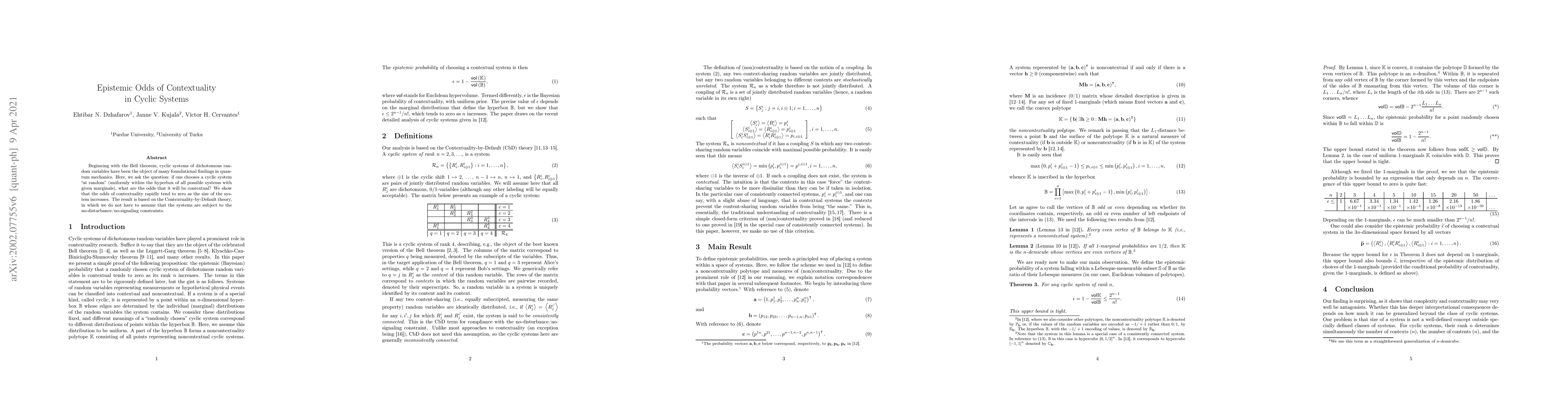 Beginning with the Bell theorem, cyclic systems of dichotomous random variables have been the object of many foundational findings in quantum mechanics. Here, we ask the question: if one chooses a cyclic system "at random" (uniformly within the hyperbox of all possible systems with given marginals), what are the odds that it will be contextual? We show that the odds of contextuality rapidly tend to zero as the size of the system increases. The result is based on the Contextuality-by-Default theory, in which we do not have to assume that the systems are subject to the no-disturbance/no-signaling constraints.