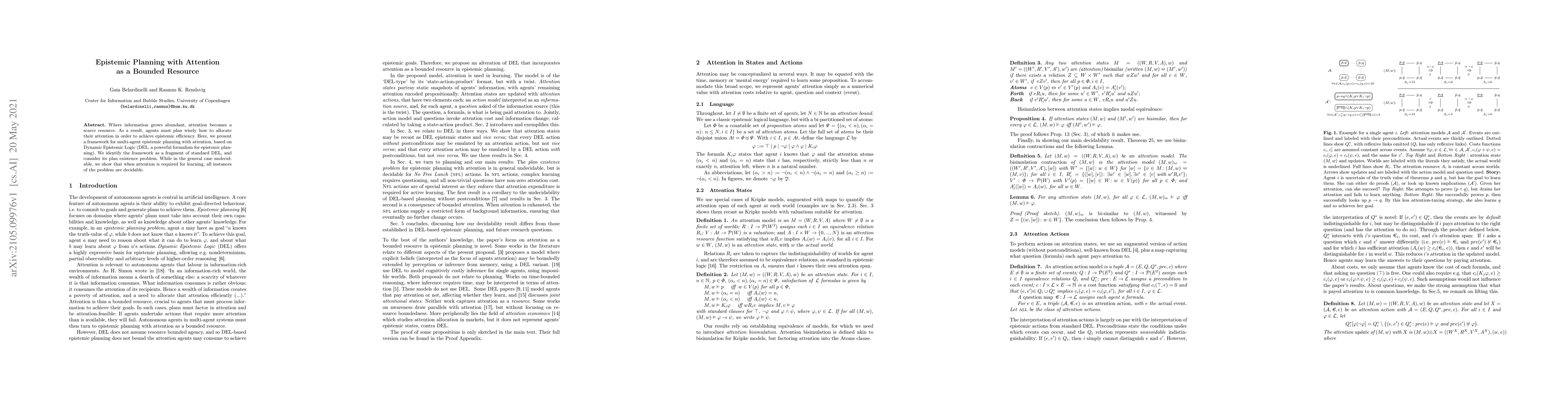 The paper presents a framework for multi-agent epistemic planning with attention, based on Dynamic Epistemic Logic (DEL), and identifies it as a fragment of standard DEL. It explores the plan existence problem, showing decidability when attention is required for learning, despite the general case being undecidable.