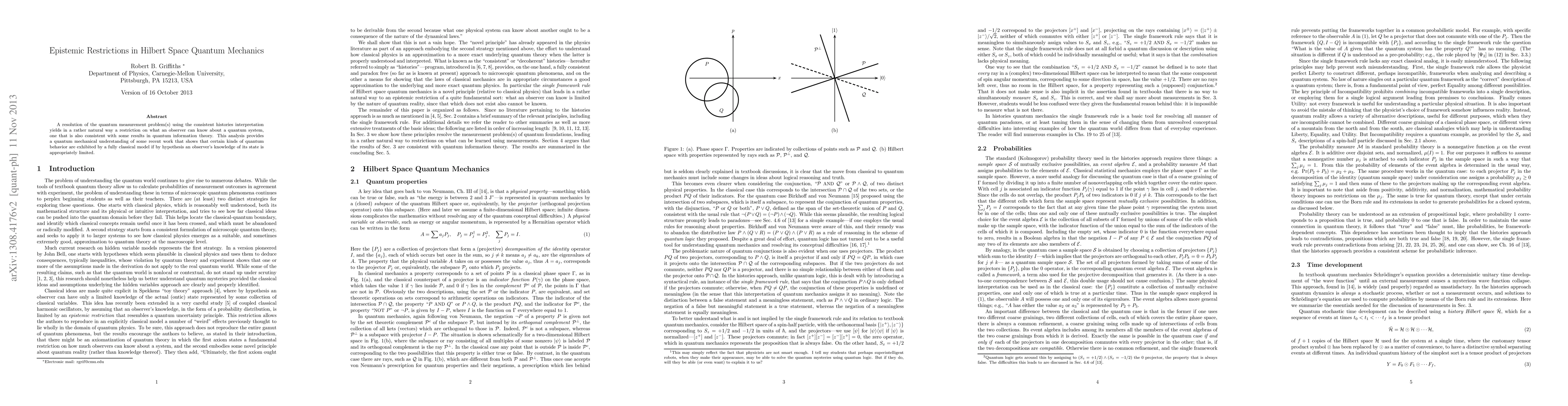 A resolution of the quantum measurement problem(s) using the consistent histories interpretation yields in a rather natural way a restriction on what an observer can know about a quantum system, one that is also consistent with some results in quantum information theory. This analysis provides a quantum mechanical understanding of some recent work that shows that certain kinds of quantum behavior are exhibited by a fully classical model if by hypothesis an observer's knowledge of its state is appropriately limited.