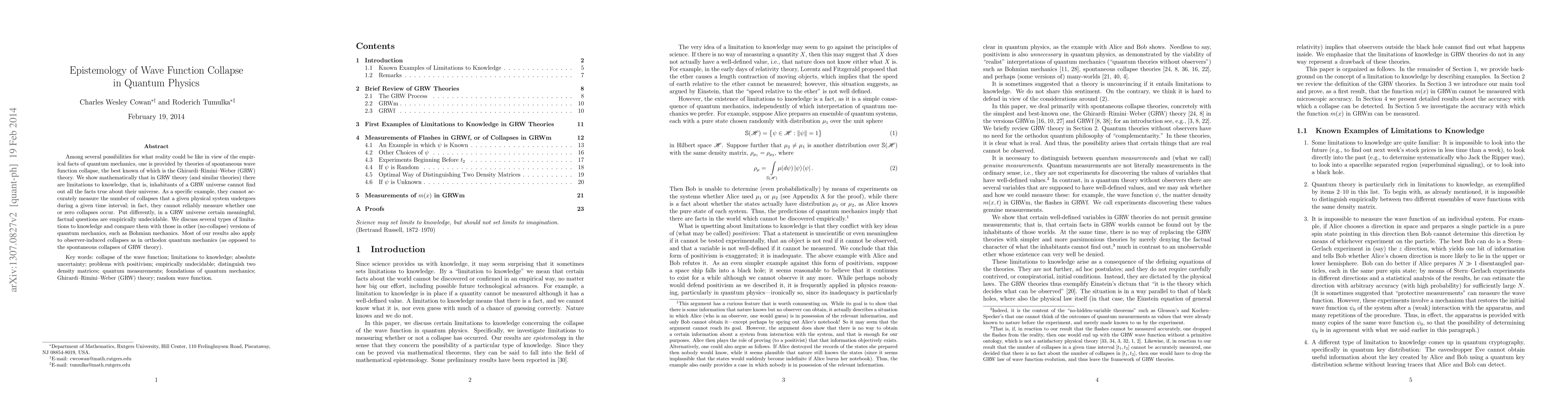 This paper explores the epistemology of wave function collapse in quantum mechanics, specifically within the Ghirardi-Rimini-Weber (GRW) theory, demonstrating that inhabitants of such a universe face inherent limitations in knowledge, including the inability to accurately measure the number of wave function collapses. It compares these limitations with those in other quantum mechanics frameworks, such as Bohmian mechanics.