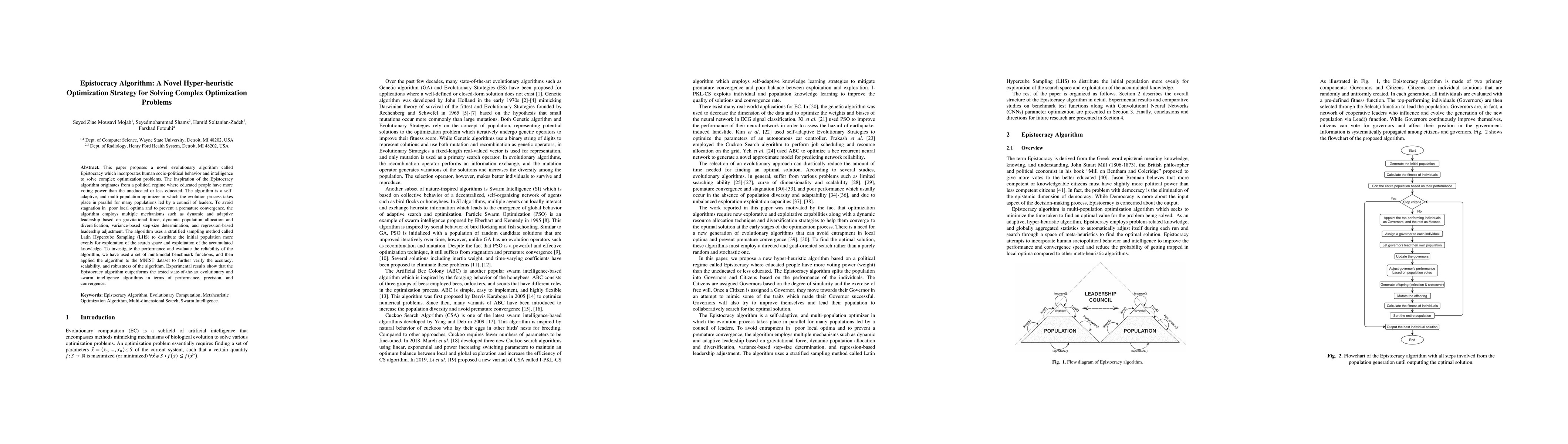 This paper proposes a novel evolutionary algorithm called Epistocracy which incorporates human socio-political behavior and intelligence to solve complex optimization problems. The inspiration of the Epistocracy algorithm originates from a political regime where educated people have more voting power than the uneducated or less educated. The algorithm is a self-adaptive, and multi-population optimizer in which the evolution process takes place in parallel for many populations led by a council of leaders. To avoid stagnation in poor local optima and to prevent a premature convergence, the algorithm employs multiple mechanisms such as dynamic and adaptive leadership based on gravitational force, dynamic population allocation and diversification, variance-based step-size determination, and regression-based leadership adjustment. The algorithm uses a stratified sampling method called Latin Hypercube Sampling (LHS) to distribute the initial population more evenly for exploration of the search space and exploitation of the accumulated knowledge. To investigate the performance and evaluate the reliability of the algorithm, we have used a set of multimodal benchmark functions, and then applied the algorithm to the MNIST dataset to further verify the accuracy, scalability, and robustness of the algorithm. Experimental results show that the Epistocracy algorithm outperforms the tested state-of-the-art evolutionary and swarm intelligence algorithms in terms of performance, precision, and convergence.