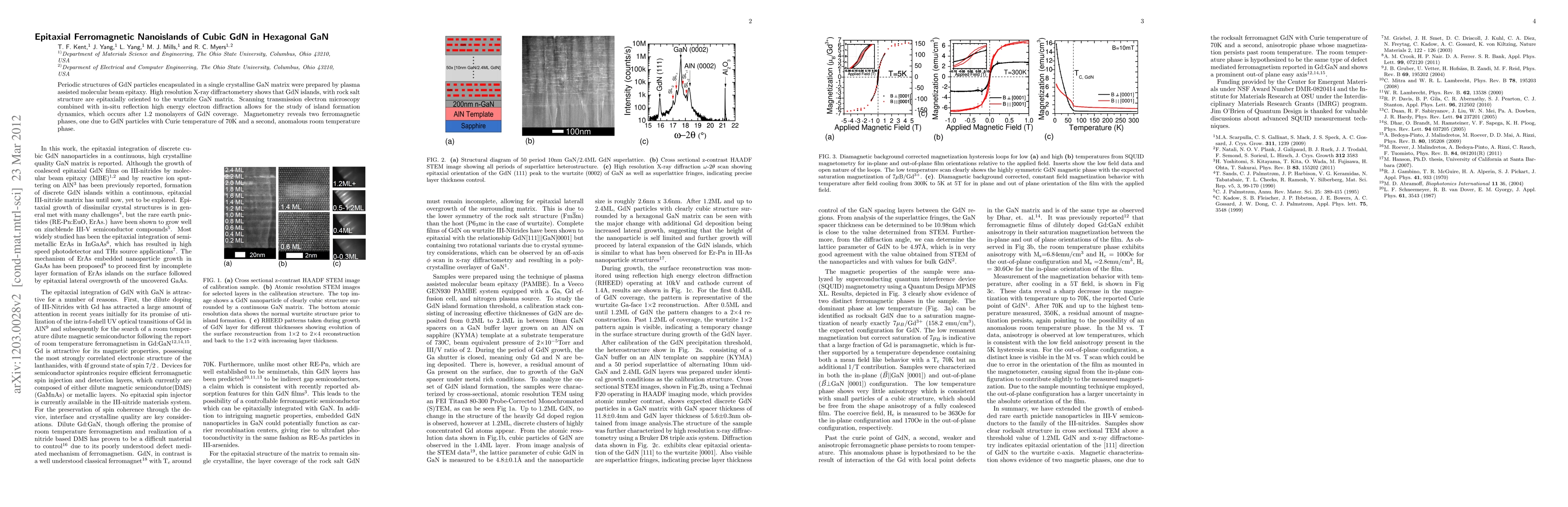 This study details the formation of epitaxial ferromagnetic nanoislands of cubic GdN within a hexagonal GaN matrix using plasma-assisted molecular beam epitaxy, revealing distinct ferromagnetic phases with Curie temperatures of 70K and an anomalous room-temperature phase.