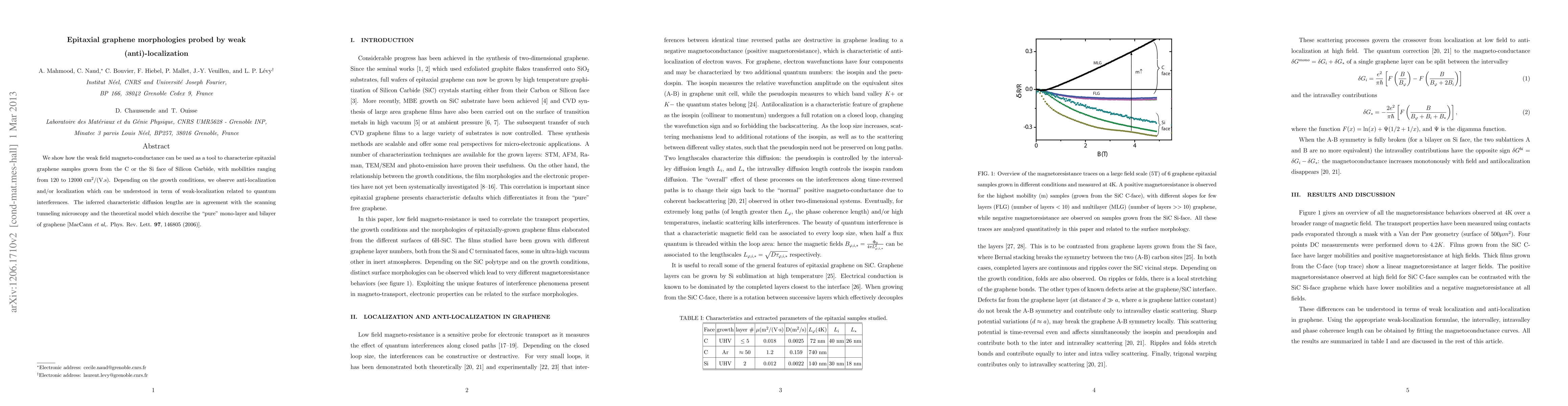Researchers used weak field magneto-conductance to study epitaxial graphene samples grown on SiC, discovering anti-localization and localization depending on growth conditions. The technique revealed characteristic diffusion lengths consistent with existing models of mono- and bilayer graphene.