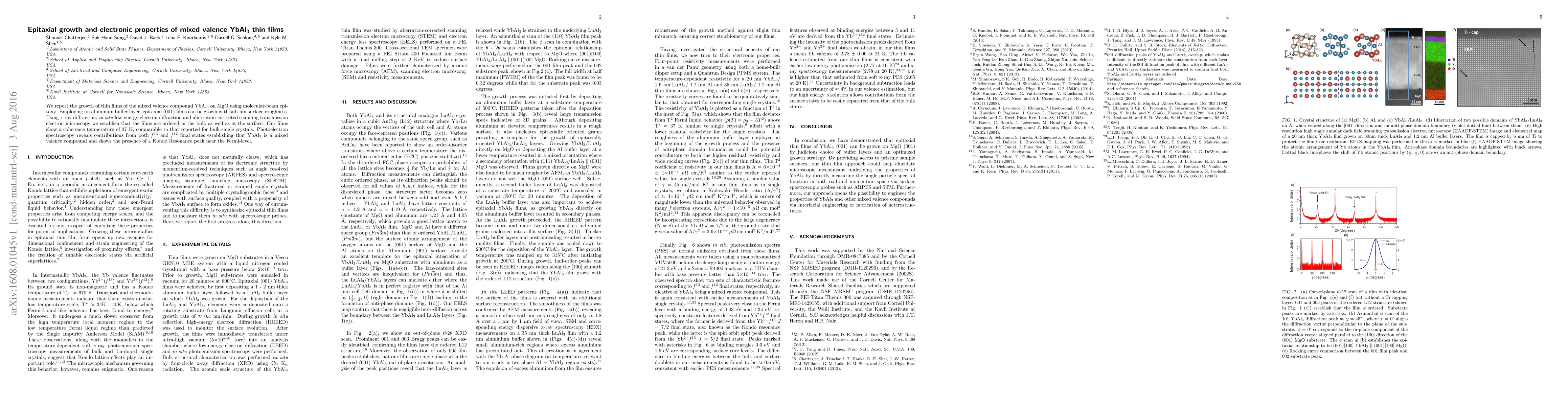 This study reports the epitaxial growth of mixed valence YbAl$_3$ thin films on MgO using molecular-beam epitaxy, revealing ordered films with sub-nm surface roughness and coherence temperature comparable to bulk crystals. Photoelectron spectroscopy confirms the mixed valence nature and identifies a Kondo Resonance peak near the Fermi level.