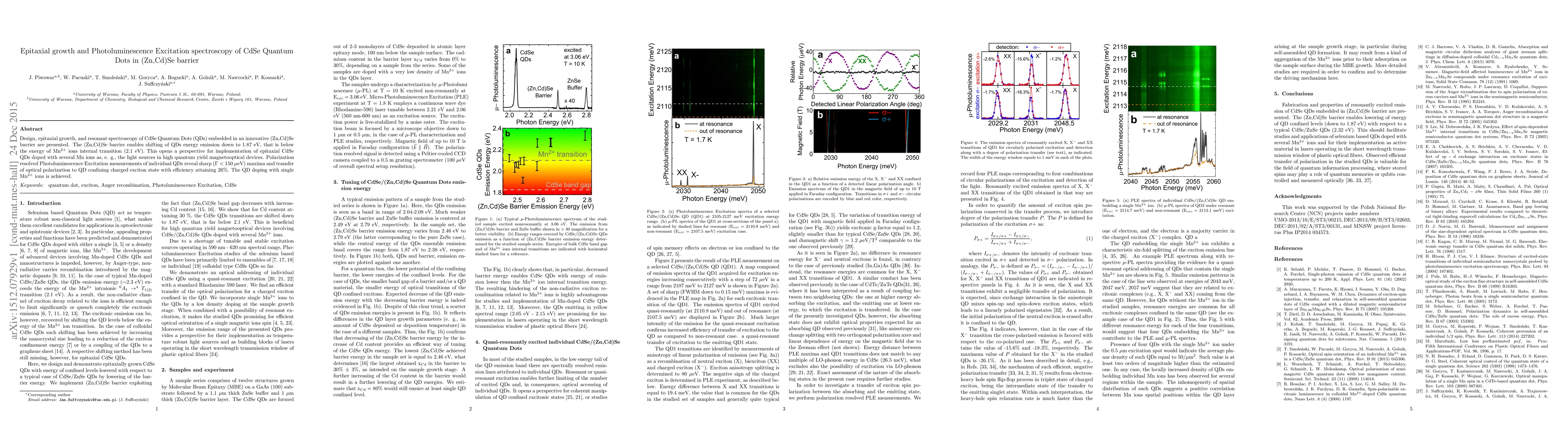 This paper presents the epitaxial growth and spectroscopy of CdSe quantum dots embedded in a (Zn,Cd)Se barrier, achieving emission shifts down to 1.87 eV. The study also reveals efficient optical polarization transfer and successful doping of individual quantum dots with Mn$^{2+}$ ions.