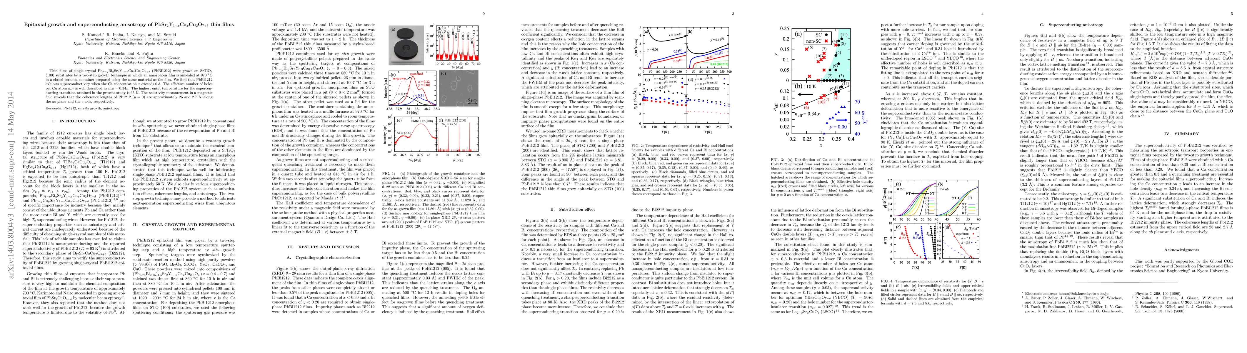 This study investigates the epitaxial growth and superconducting properties of PbBi1212 thin films, finding superconductivity onsets at 65 K when the Ca concentration exceeds 0.3. The coherence lengths are approximately 25 Å in the $ab$ plane and 2.7 Å along the $c$ axis, revealing anisotropic superconducting behavior.