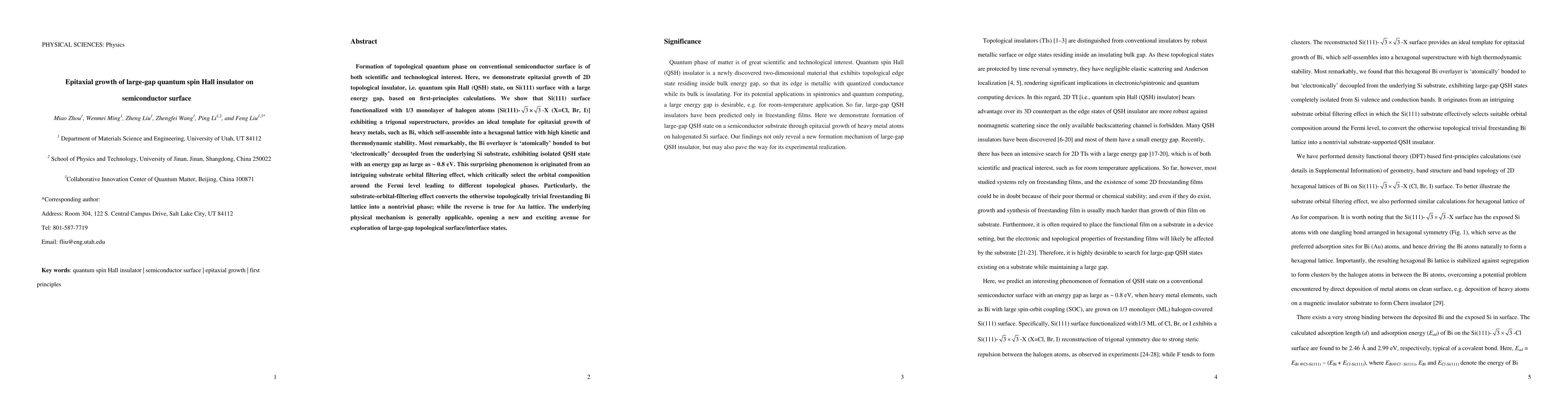 This paper demonstrates the epitaxial growth of a 2D quantum spin Hall insulator on a Si(111) surface functionalized with halogen atoms, showing a large energy gap of 0.8 eV. The study reveals a substrate orbital filtering effect that induces topological phases in the epitaxial heavy metal overlayer, transforming it from trivial to nontrivial.