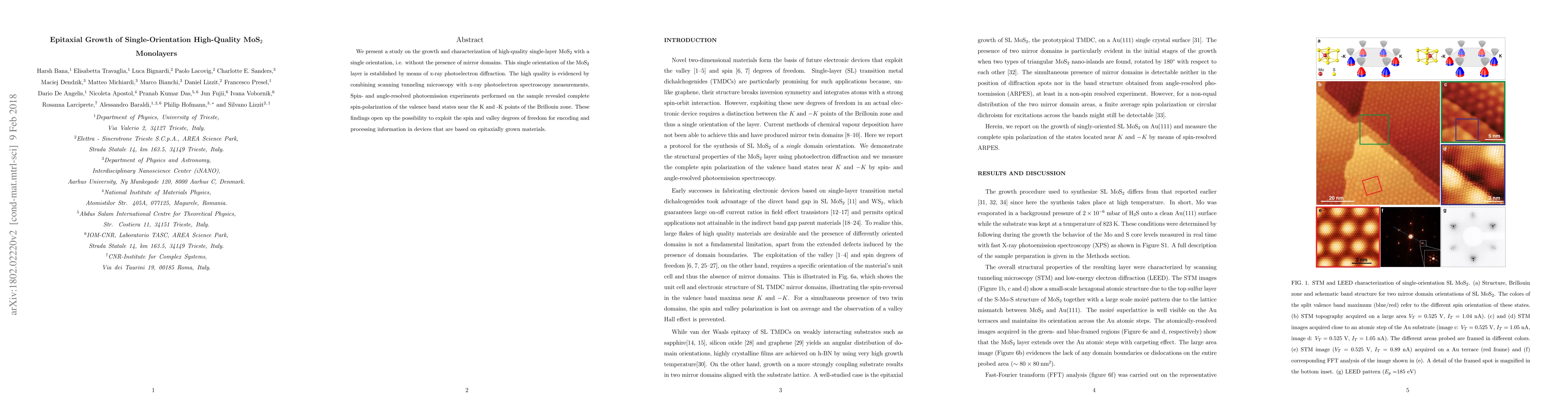 The paper introduces a novel approach for growing high-quality, singly-oriented MoS2 monolayers and demonstrates the first measurement of complete spin polarization of states near K and -K for single-layer MoS2 using spin-resolved ARPES.