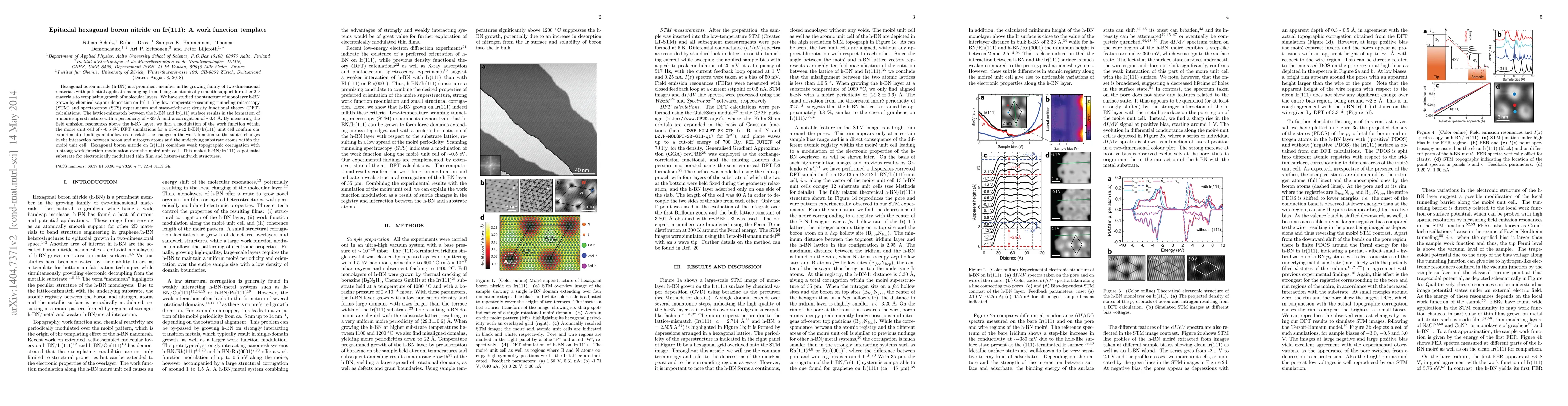 This study explores the growth of hexagonal boron nitride (h-BN) on Ir(111) via chemical vapour deposition, revealing a moiré superstructure with a work function modulation of ~0.5 eV. The weak topographic corrugation and strong work function modulation make h-BN on Ir(111) a promising substrate for electronically modulated thin film and hetero-sandwich structures.